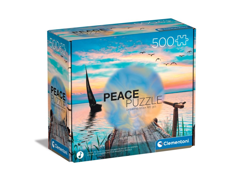 Skládání jako meditace. Uvolněte se, dýchejte, relaxujte... a skládejte. Řada Peace Puzzle od Clementoni nabízí dvojnásobný relax. Kombinuje totiž skládání puzzle a poslech hudby navozující pocit klidu a míru. Pečlivě vybrané obrázky překrásné přírody vyvedené v decentních barvách v kombinaci s příjemnou hudbou blahodárně působí na naše smysly. Puzzle obsahuje odkaz na originální playlist Spotify s relaxační hudbou a zvuky, vytvořený speciálně pro Clementoni Peace Puzzle.Rozměr balení: 18,2 x 16,3 x 7 cm Rozměr složeného puzzle: 49 x 36 cm.. Věk: 14+
