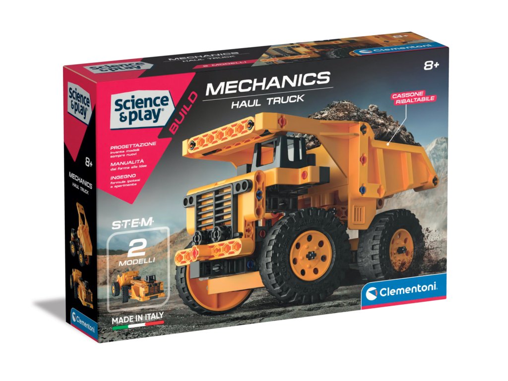 Model náklaďáku čekající na složení, aby děti mohly objevit tajemství mechaniky a techniky! S více než 150 součástkami si děti budou moci postavit 2 modely nákladních aut se sklápěcím lůžkem pro nakládání a vykládání vzácných materiálů, kamení a mnoho dalšího! Díky manuálně řiditelným kolům se vozík pohybuje realisticky, takže děti mohou hrát fascinující dobrodružství v podzemních dolech! Bezplatná aplikace obsahuje 3D pokyny vysvětlující krok za krokem, jak snadno sestavit oba modely v každé fázi. Originální hračka pro opravdové fanoušky mechaniky a motorů! Rozměry balení: 27,6x6x18,8cm. Věk: 8+