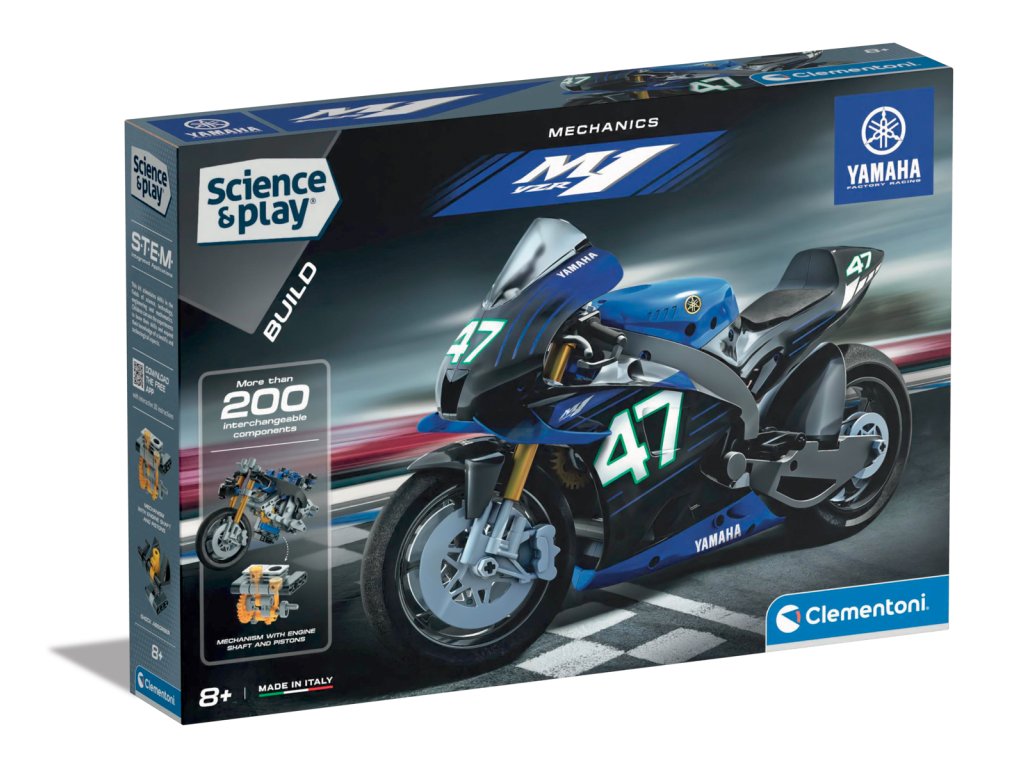 Stavebnice, kterou si děti užijí při stavbě slavné Yamahy M1, několikanásobného vítěze závodů na okruhu Moto GP. Obsahuje všechny díly potřebné k vytvoření Yamahy M1 s funkční 3rychlostní převodovkou, předním odpružením a systémem řetězového pohonu. Aplikace „Science & Play Build“ integruje herní zážitek tím, že poskytuje interaktivní 3D animace jako pomůcku při sestavování. Stylové detaily s díly karoserie, které jsou věrné originálu. Ilustrovaný návod vysvětluje, jak sestavit tento model krok za krokem. Rozměr balení: 45,1x31,1x7 cm. Věk 8+