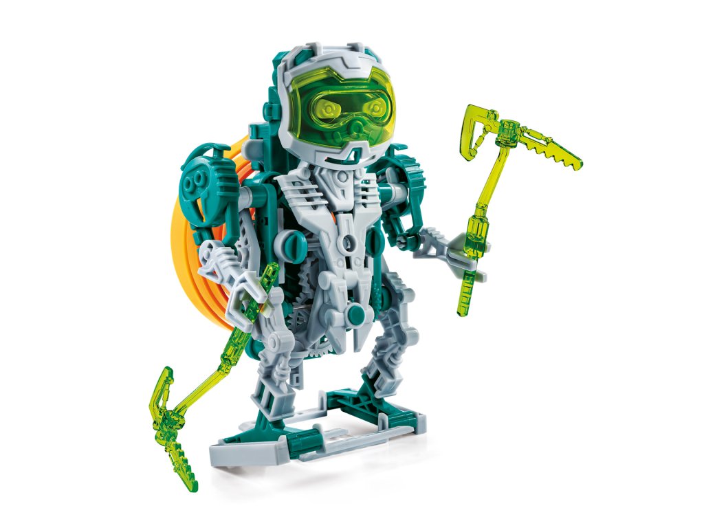 Nová sada o robotice k objevování neprozkoumaných světů a setkání s novými druhy. Součástí jsou 3 modely, které lze sestavit jeden po druhém, abyste se naučili principy robotiky. Humanoidní robot s krumpáči, humanoidní robot na buldozeru a humanoidní robot s vrtačkou. Roboti mohou zkoumat, kopat a odhalovat tajemství z nových světů. Snadno sestavitelné, vybavené pružinovým mechanismem. Navrženo a vyrobeno v Itálii. Rozměr balení: 38,5x28,5x7,8 cm. Věk 8+