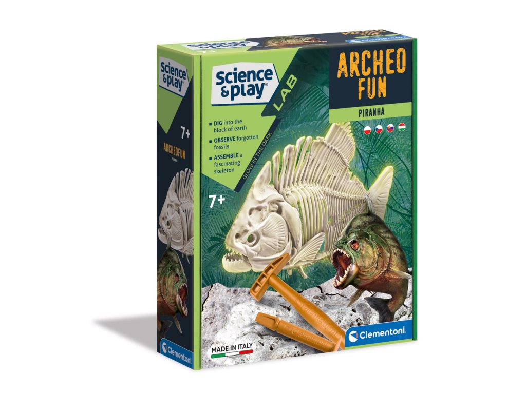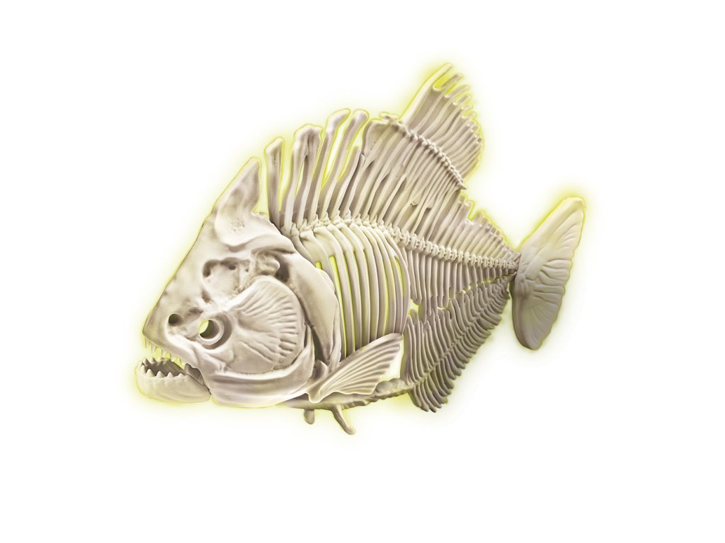 Vykopejte jako skutečný paleontolog fosilní pozůstatky hodně obávané prehistorické Piraně. Sestavte její kostru, která svítí ve tmě. Její hrozivý vzhled vám vyrazí dech. Sada také obsahuje kladivo a dláto. Rozměr balení: 21 x 25,2 x 6,5 cm. Věk: 7+
