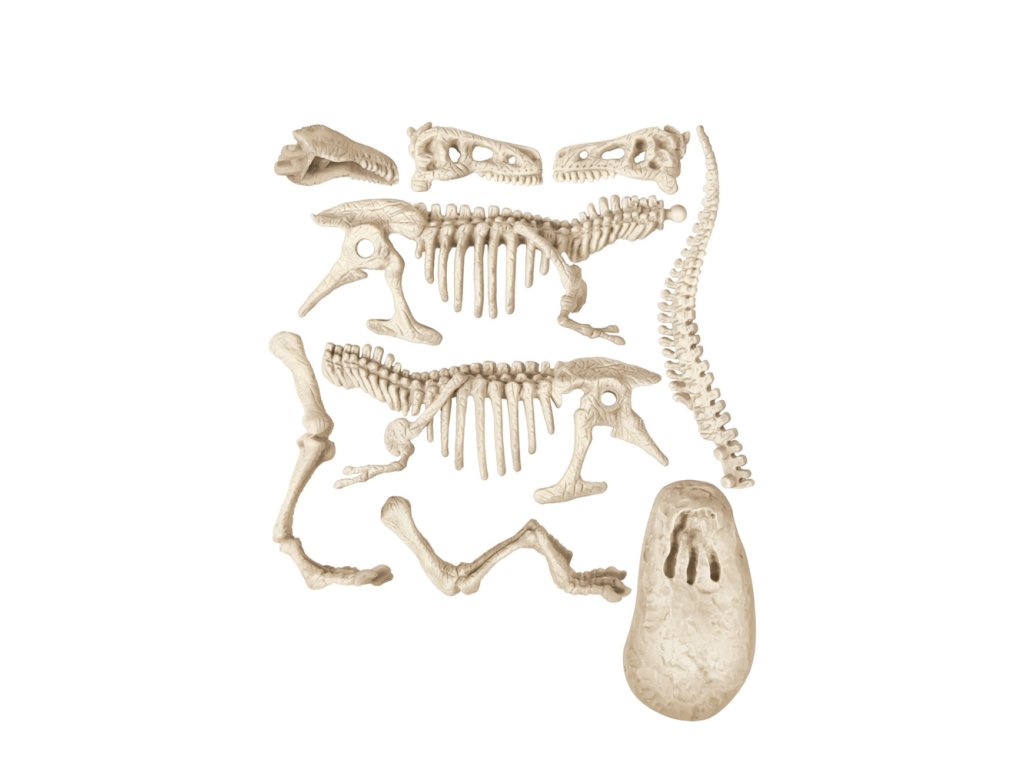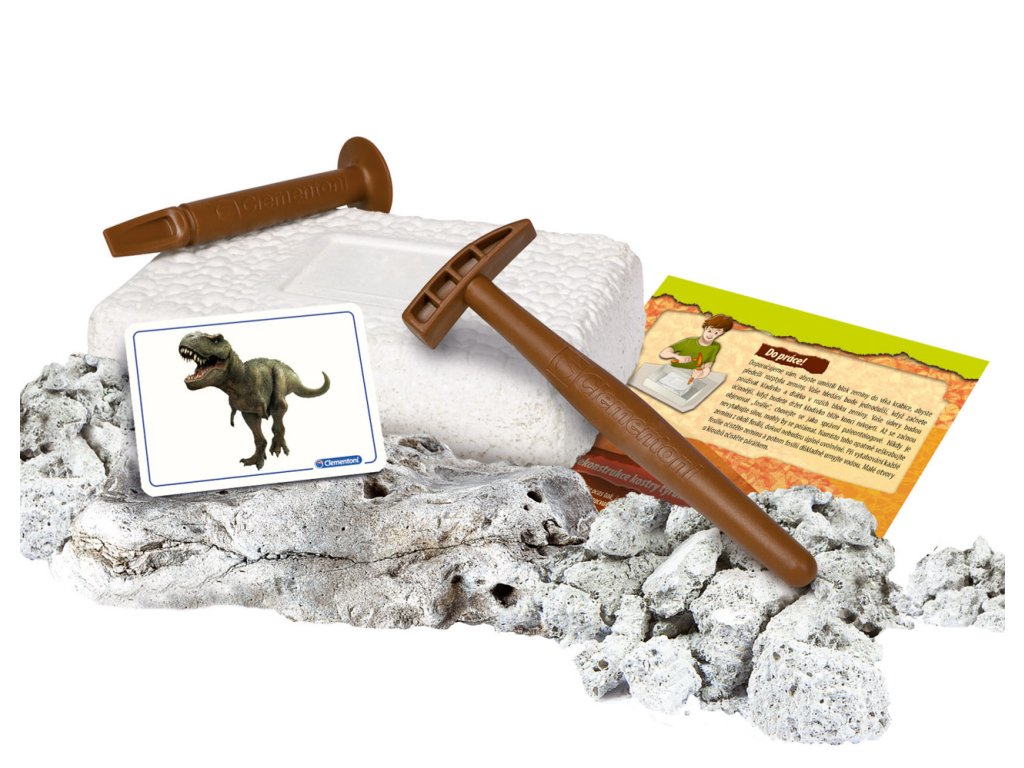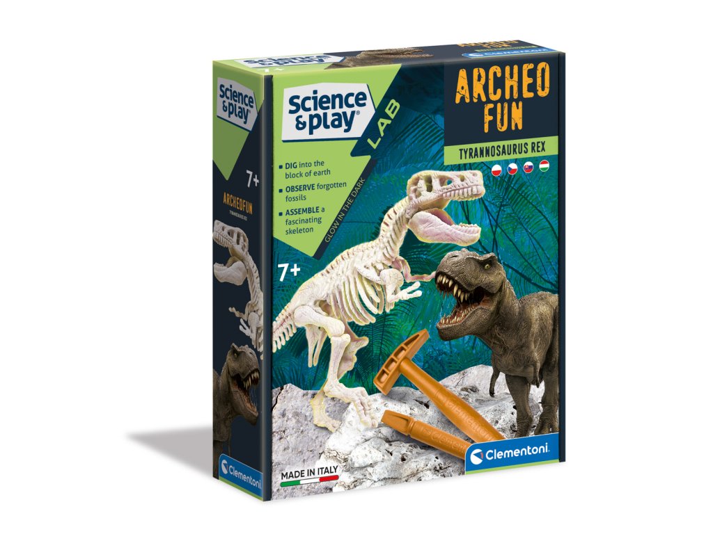 Objevte, pomocí kladiva a dláta, ve tmě svítící kostru legendárního T-Rexe! Prožijte minulost díky rozšířené realitě! S bezplatnou aplikací za pomoci tabletu/smartphonu vraťte legendární stvoření zpět k životu. Bavte se speciálními efekty, pořiďte si spoustu fotografií, upravujte a sdílejte je! Balení obsahuje kladivo a dláto, takže se můžete stát skutečným paleontologem. Rozměr balení: 25,2 x 21 x 6,5 cm. Věk: 7+