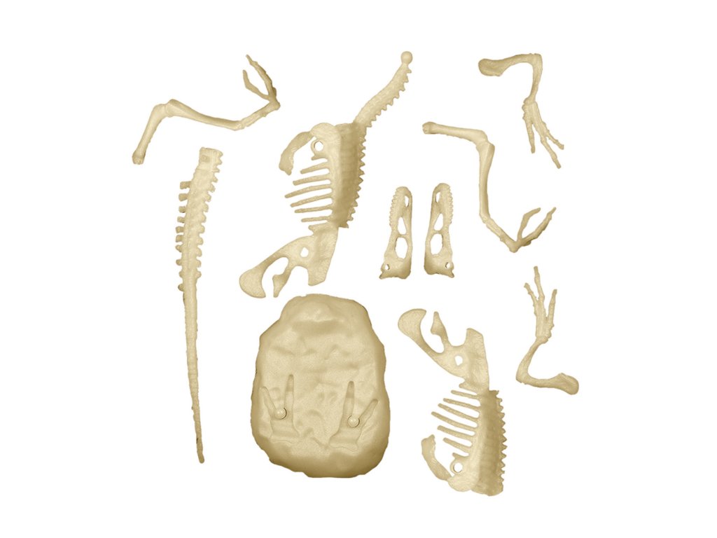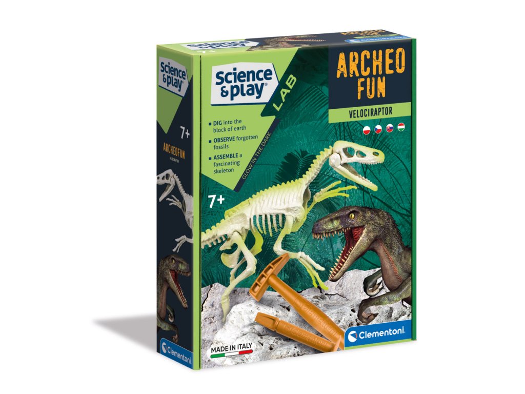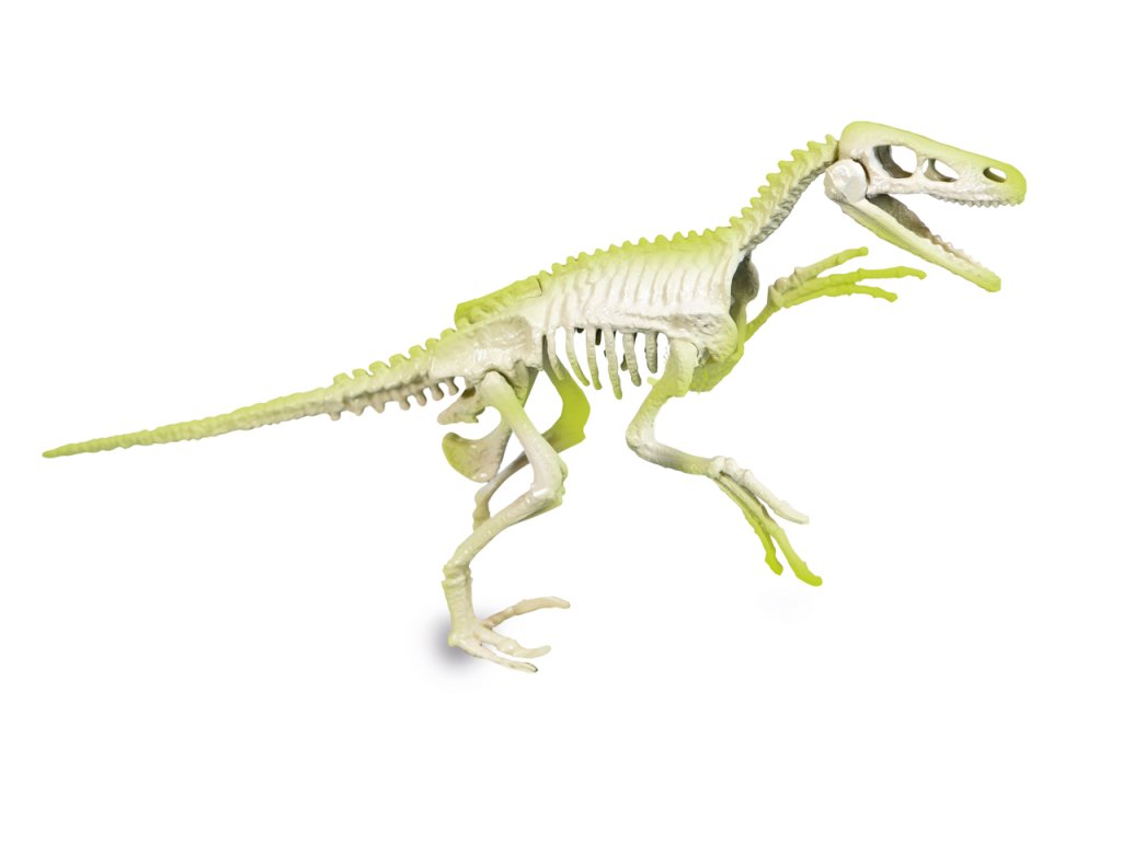 Velociraptor, legendární prehistorické stvoření ožívá, díky této skvělé sadě pro malé paleontology. Kladivo a dláto slouží k rozbití kamene ve kterém se skrývá neuvěřitelná kostra dinosaura. Kostra Velociraptora svítí ve tmě! Rozměr balení: 25,2 x 21 x 6,5 cm. Věk: 7+