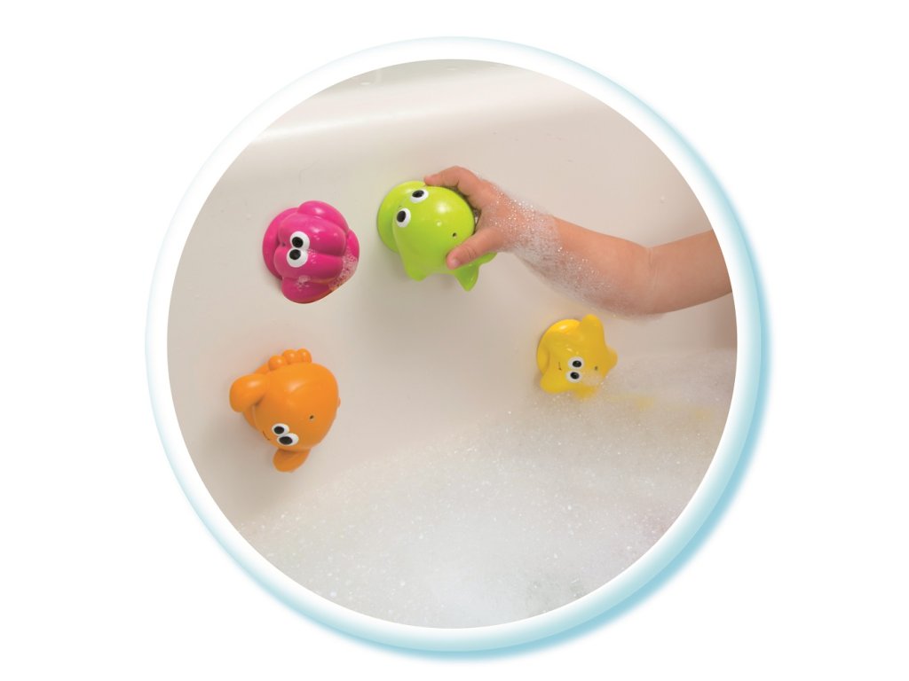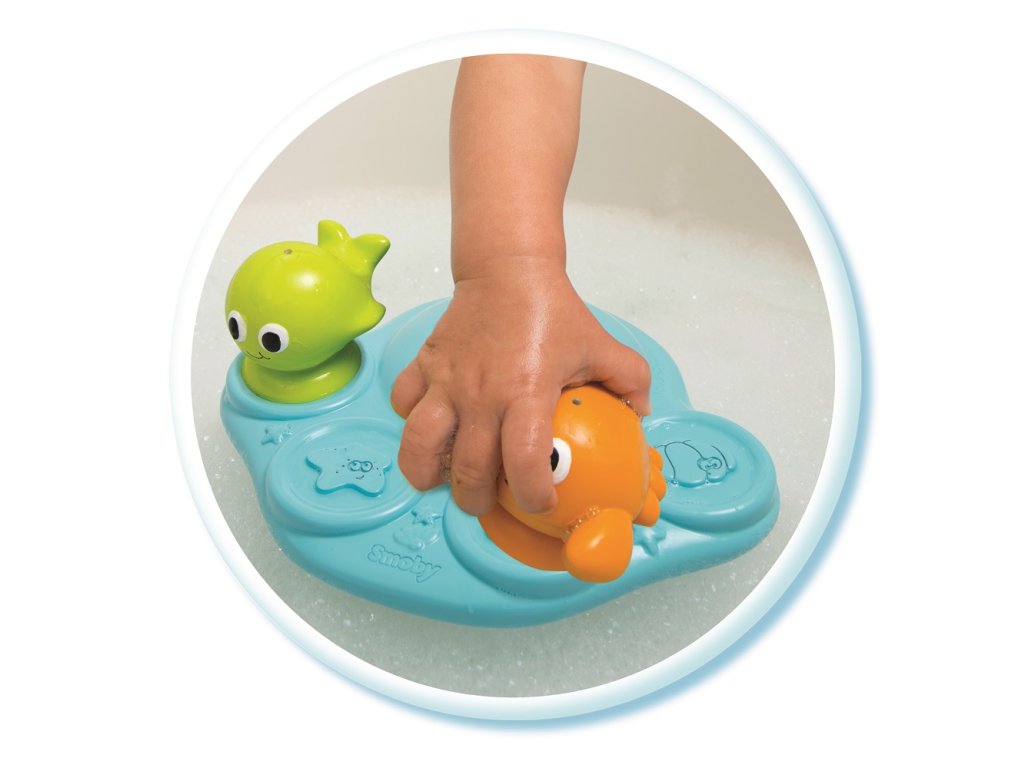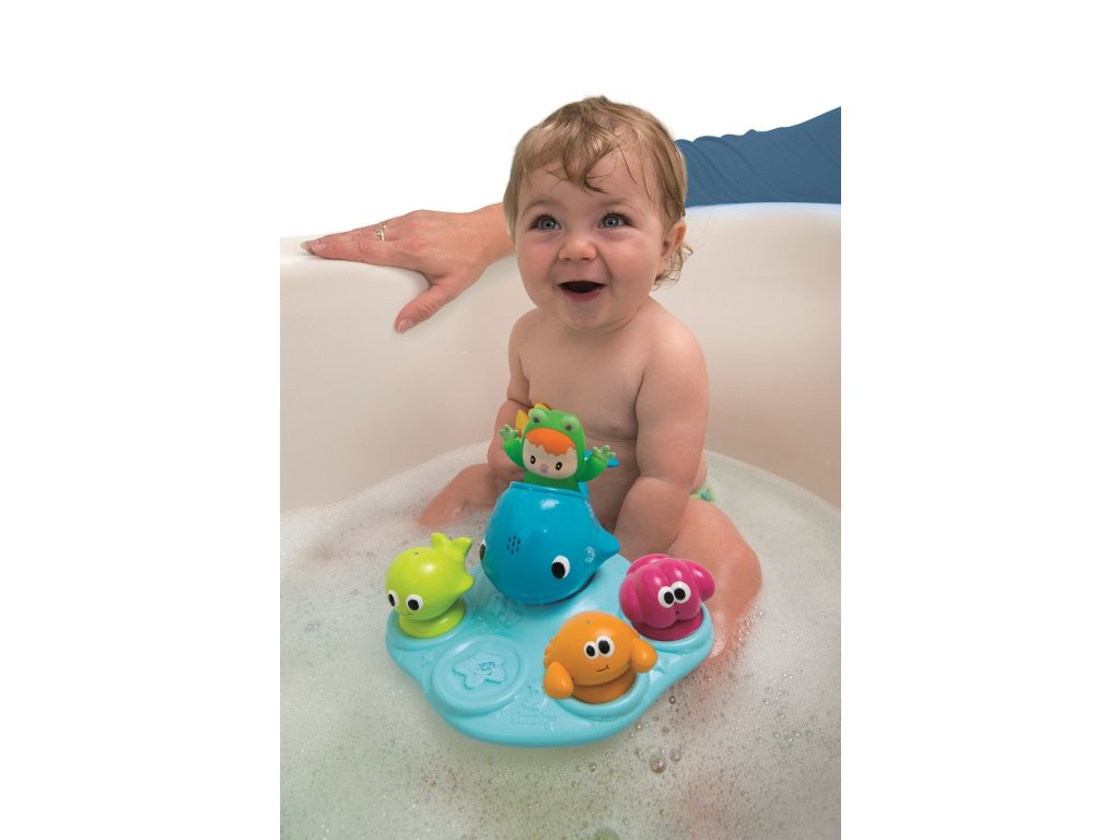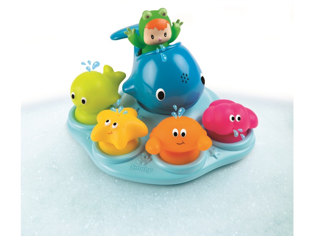 Plovoucí ostrov s postavičkou Cotoons a stříkacími zvířátky pro zábavné koupání. Velrybu lze použít i jako konvičku. Všechna zvířátka mají přísavky. Rozměry ostrova: 24 x 15 x 21 cm.