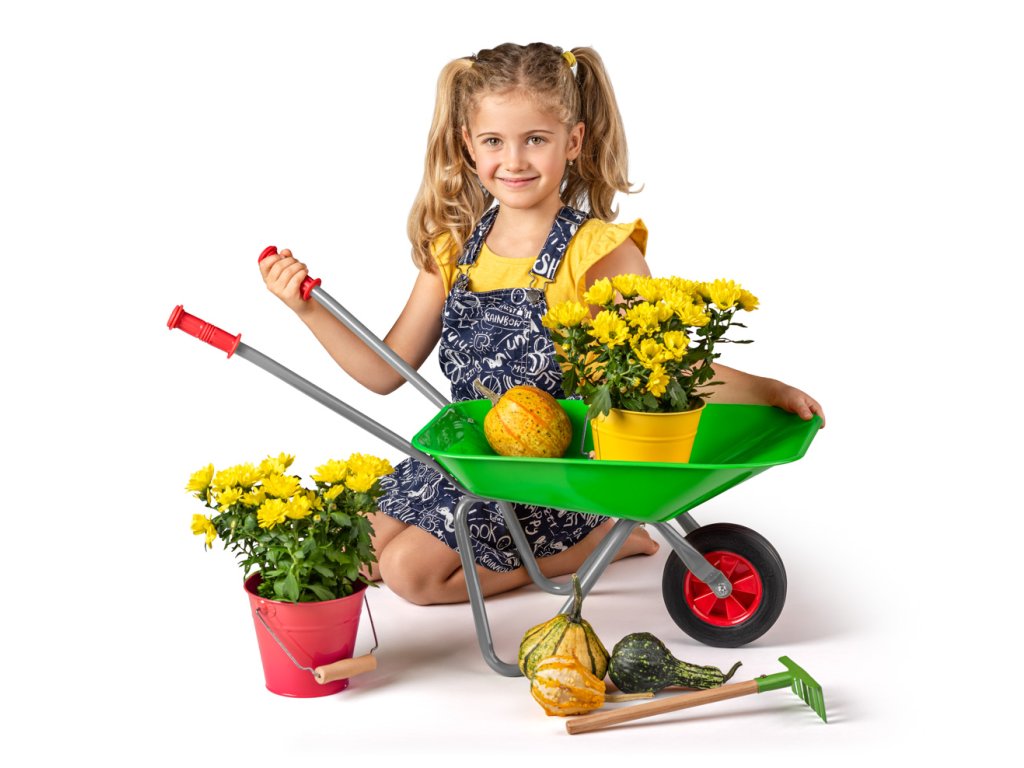 Zahradní kolečko- zelené je nepostradatelnou součástí vybavení každého malého pomocníka na vaší zahradě. Svou jednoduchou konstrukcí, barevnou kombinací a kvalitním provedením si získá přízeň každého malého zahradníka. Bude mu pomocníkem při převážení písku, květin nebo zeleniny.