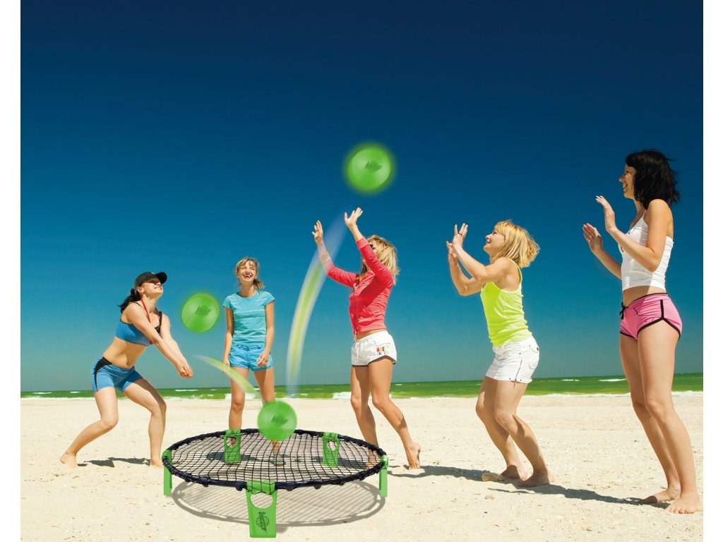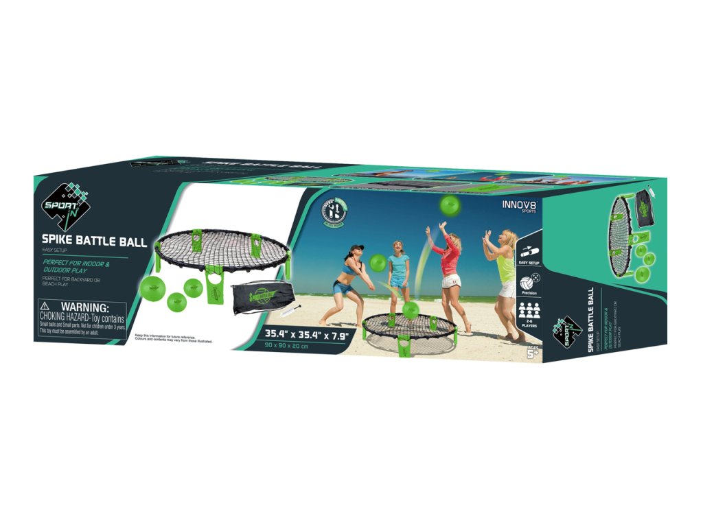 Venkovní dynamická sportovní hra Spikeball je skvělá hra pro2-6 hráčů s jednoduchými pravidly.Cílem je maximálně třetím úderem odrazit míček od trampolínky. Hra se přitom zahajuje podáním, to by nemělo od trampolínky vyskočit výš než natažená ruka spoluhráče. Hrát ovšem můžete jakoukoli částí těla. Míček se od trampolínky musí odrazit mimo ni, pokud by dopadl na ni, je to chyba hráče, který míček tímto způsobem zahrál. Vítězí dvojice, která jako první získá 21 bodů. Se setem Spikeball si užijete skutečně skvělou zábavu. sada obsahuje: 5× nožička | Průměr sítě: 90 cm