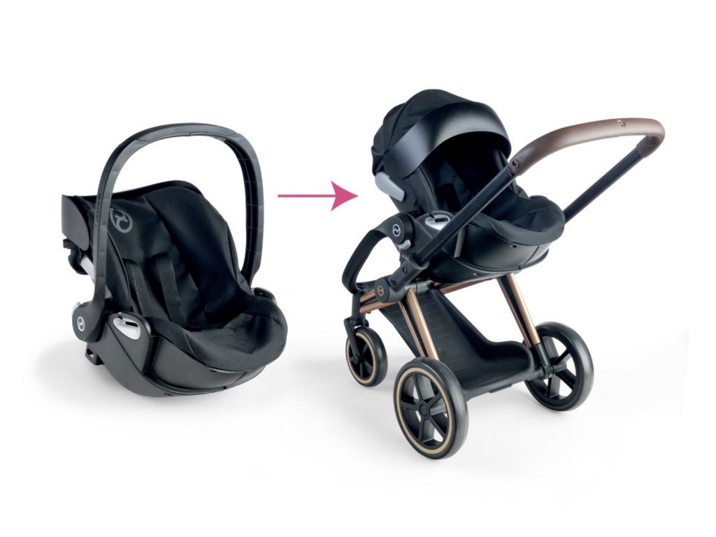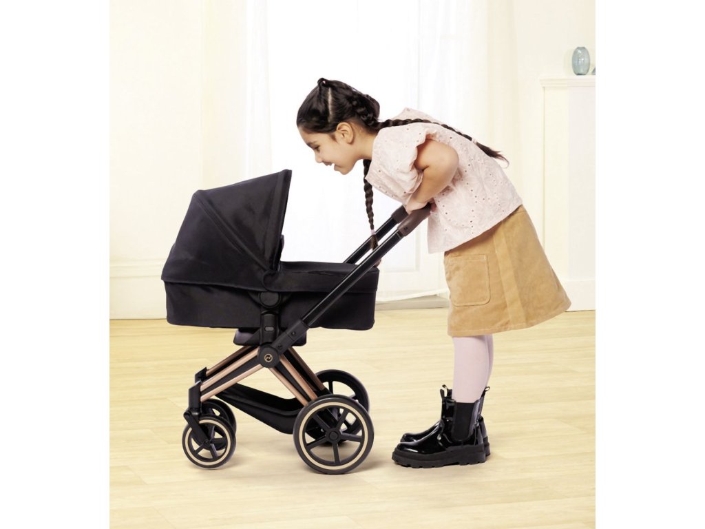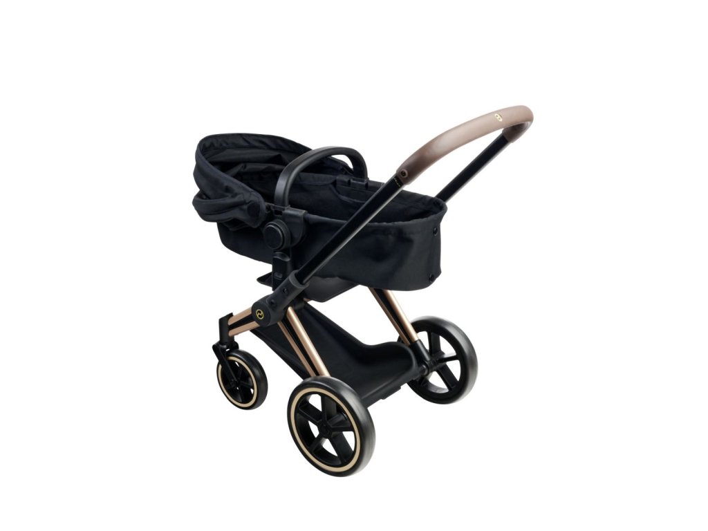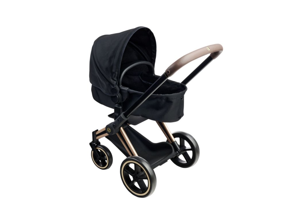 Kočárek Cybex Black pro panenky byl vyvinut společně s firmou Cybex podle originálního kočárku Cybex Priam, aby se matka a dítě mohly procházet se stejným kočárkem. Skládací kočárek 3v1 pro panenky o velikosti 36-52 cm je univerzální a lze jej použít také jako dětskou postýlku pro přepravu. Má nastavitelnou stříšku, odnímatelný ochranný kryt, robustní koš a lze lehce sklopit a složit. Rozměry (DxŠ) 60 x 36,5 cm. Výška rukojeti 64,5 cm.