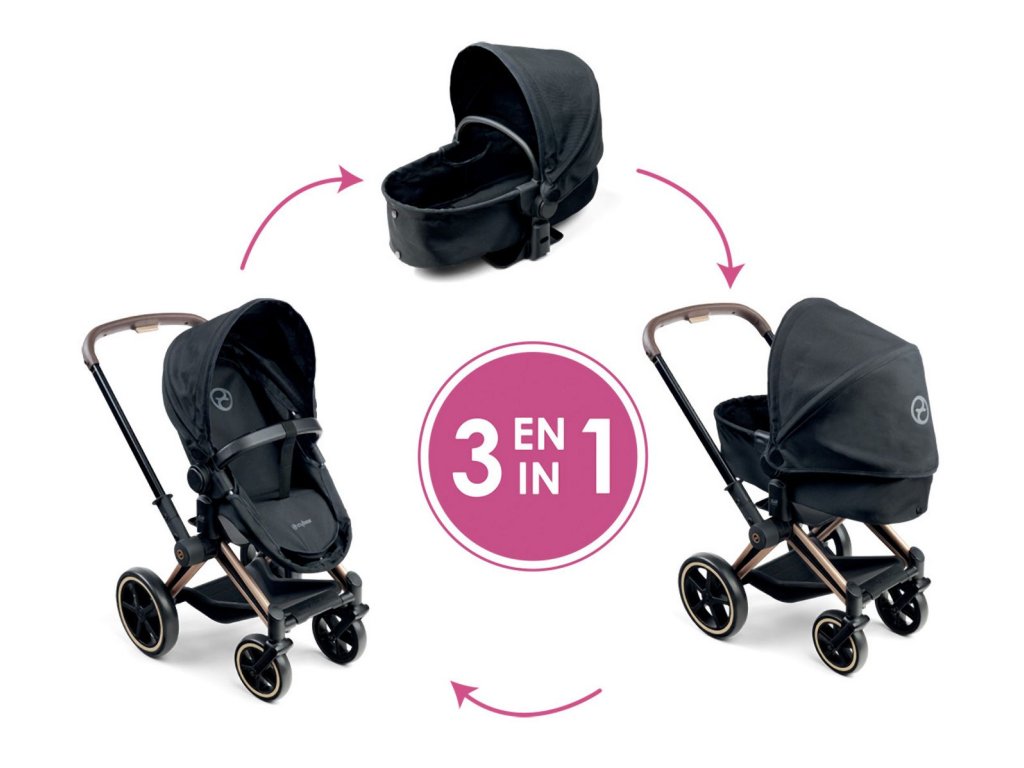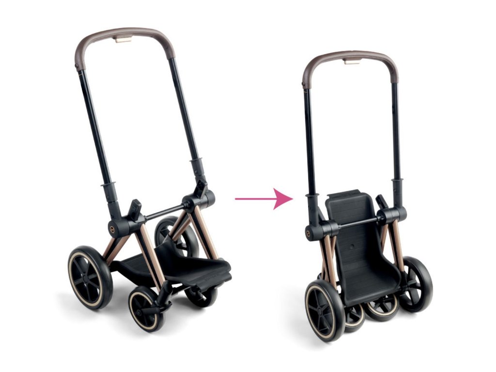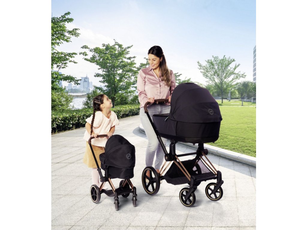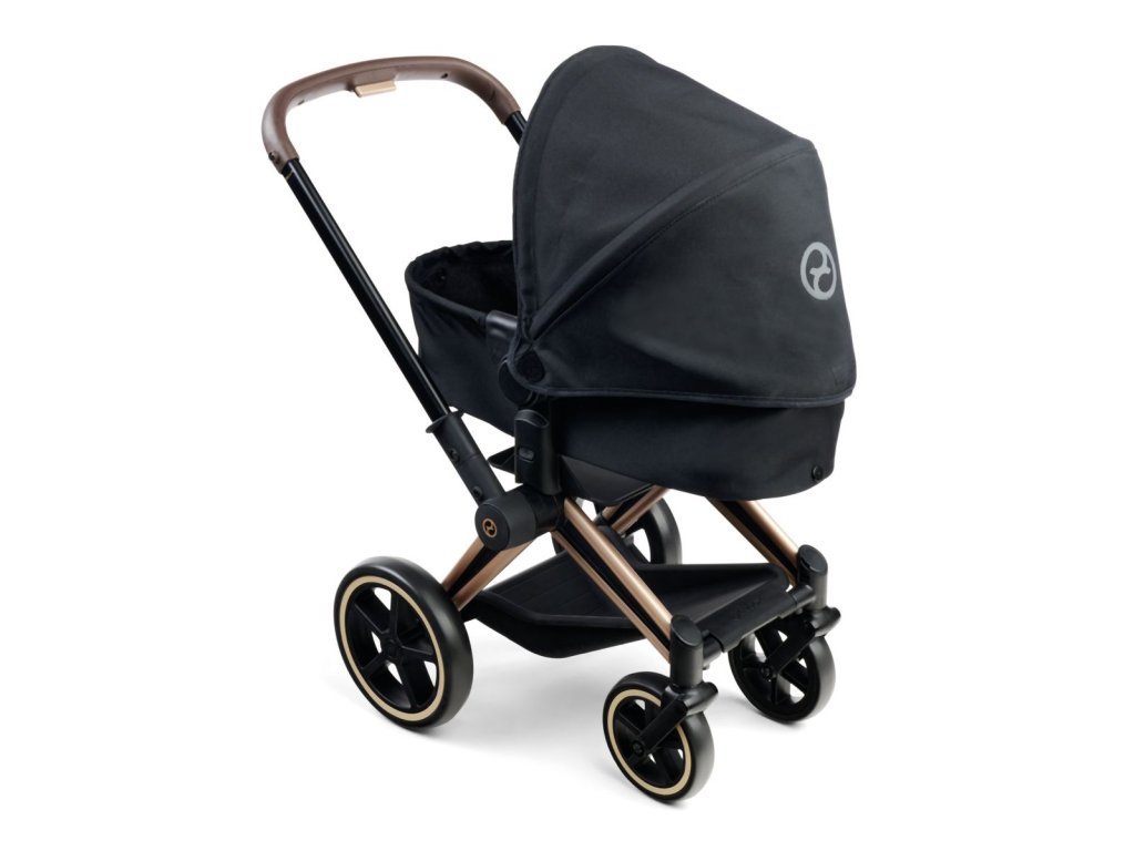 Kočárek Cybex Black pro panenky byl vyvinut společně s firmou Cybex podle originálního kočárku Cybex Priam, aby se matka a dítě mohly procházet se stejným kočárkem. Skládací kočárek 3v1 pro panenky o velikosti 36-52 cm je univerzální a lze jej použít také jako dětskou postýlku pro přepravu. Má nastavitelnou stříšku, odnímatelný ochranný kryt, robustní koš a lze lehce sklopit a složit. Rozměry (DxŠ) 60 x 36,5 cm. Výška rukojeti 64,5 cm.