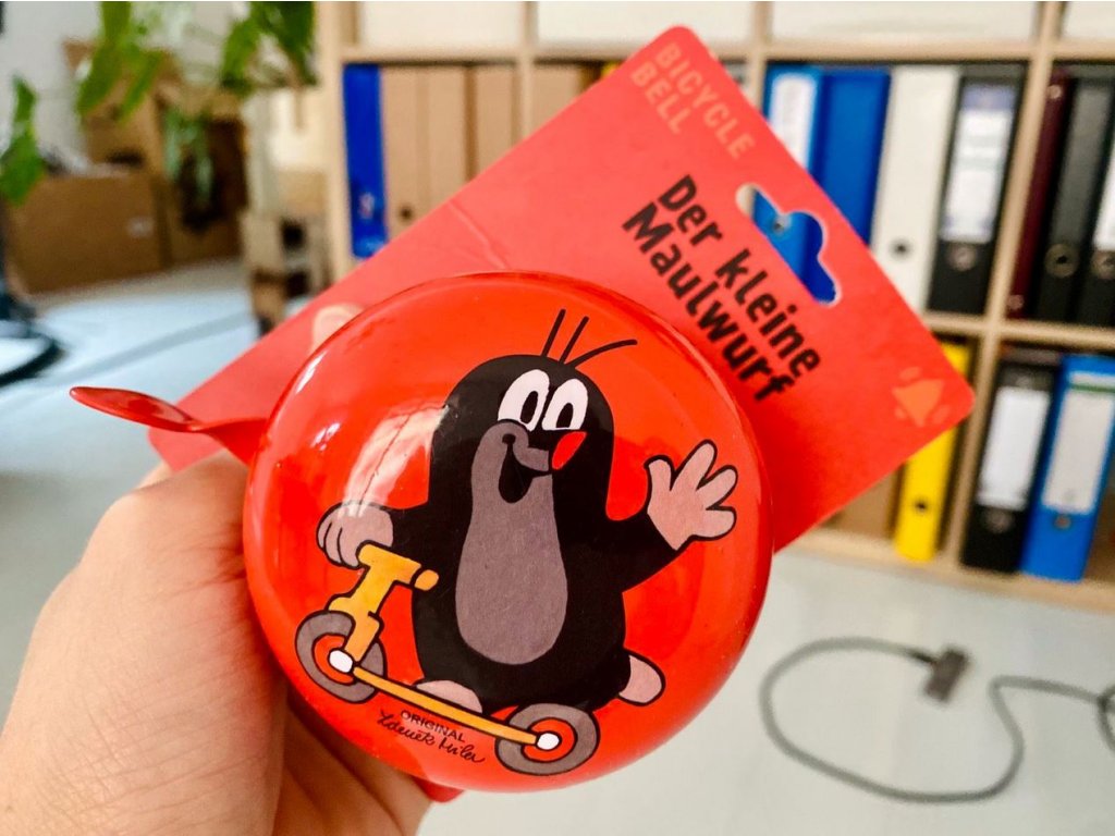 Retro kovový zvonek na kolo Krteček: Roller (8 x 8,5 cm)