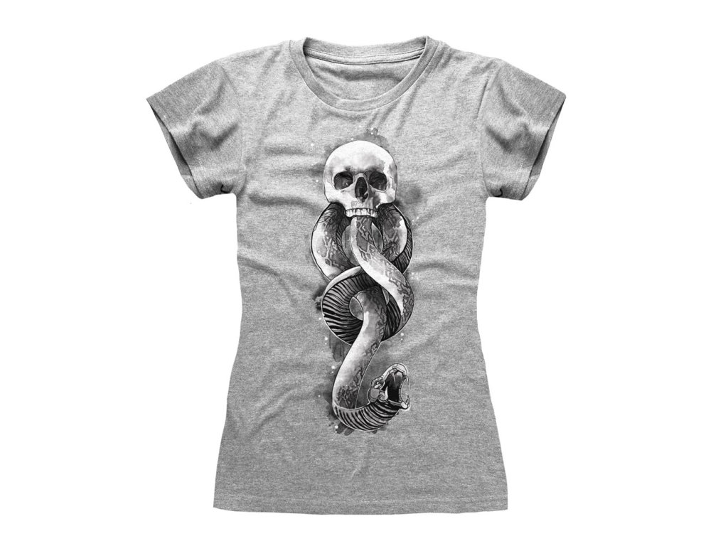 Šedé dámské tričko inspirované znakem hada z filmové a knižní série Harry Potter.