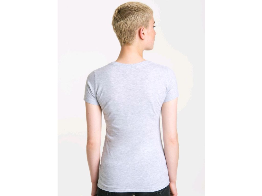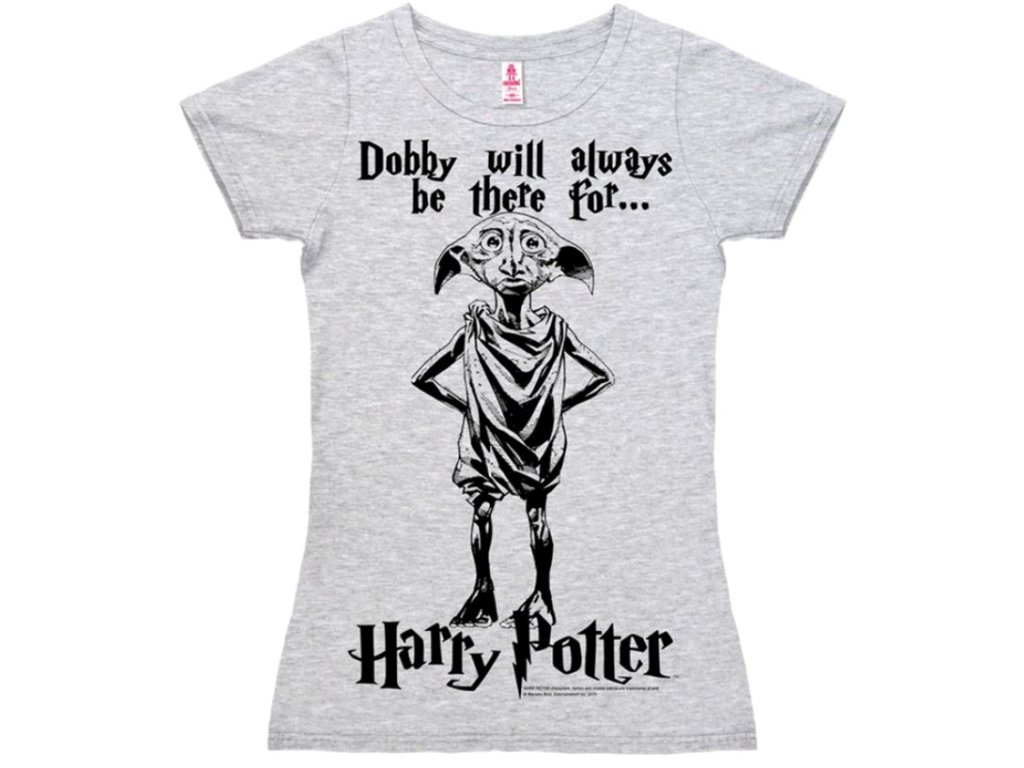 Šedé dámské tričko s grafikou skřítka Dobbyho z Harryho Pottera.