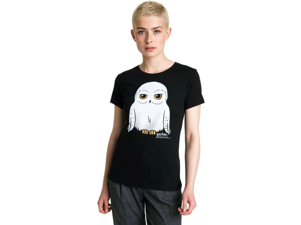 Černé dámské tričko inspirované věrnou sovou Hedvikou od čaroděje Harryho Pottera.