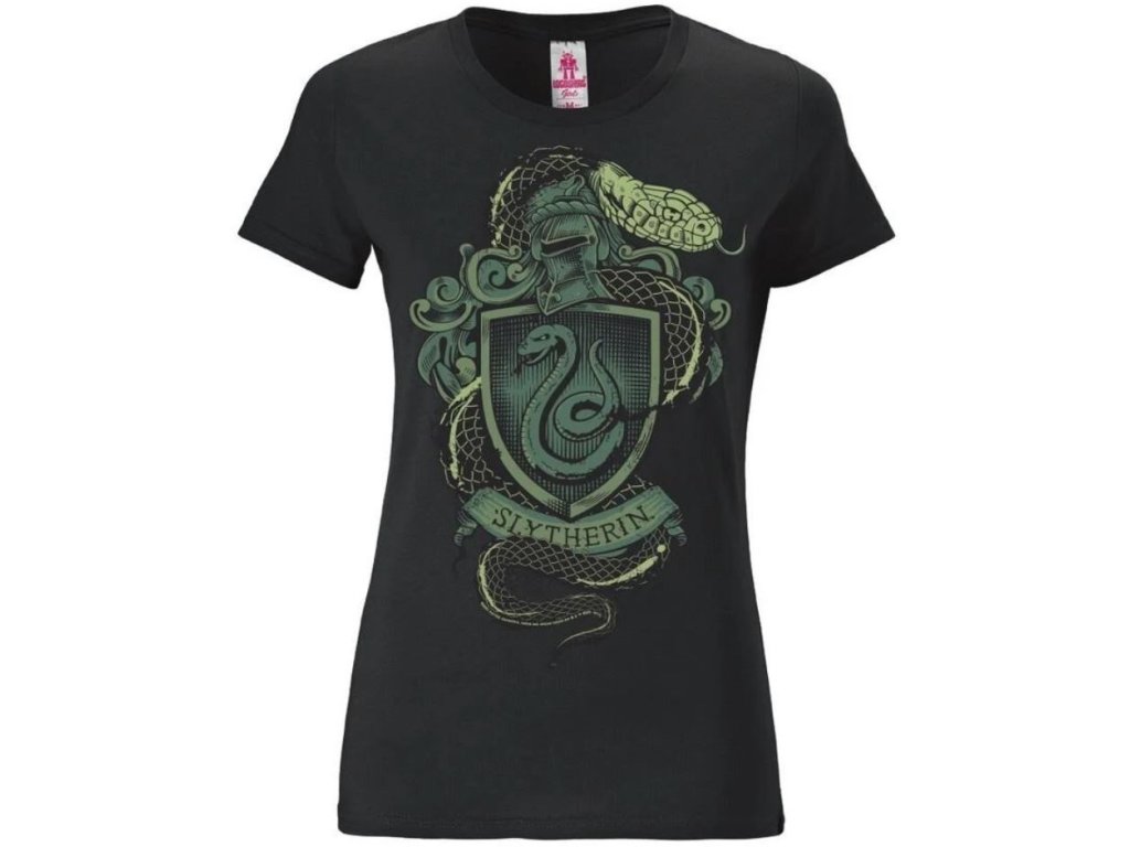 Černé dámské tričko s logem koleje Zmijozel (Slytherin) pro všechny menší i větší fanoušky školy čas a kouzel Bradavic z Harryho Pottera.