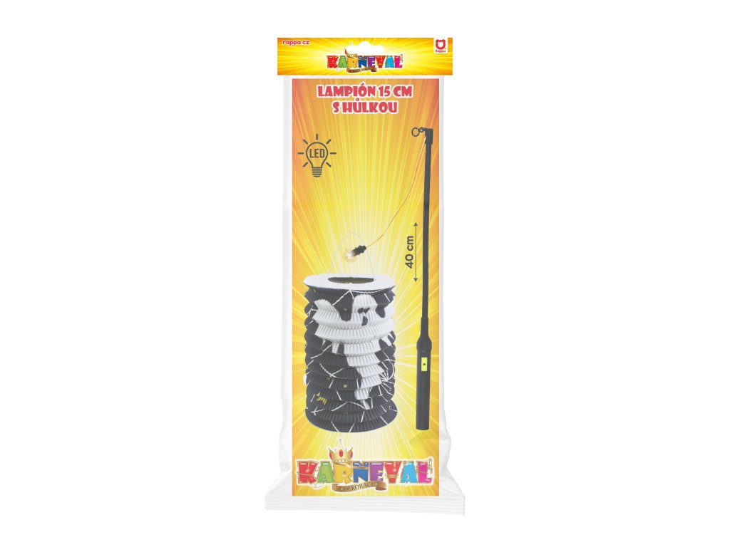 Lampión Halloween černý 15 cm se svítící hůlkou 40 cm