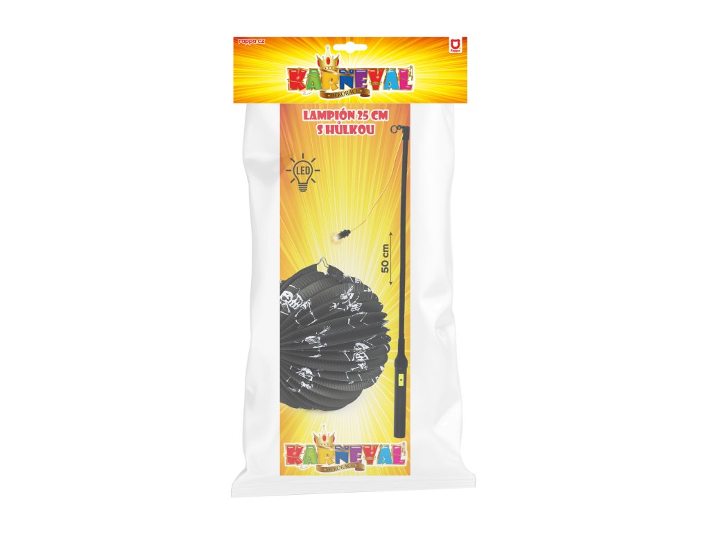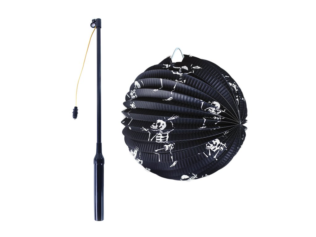 Lampion s halloweenským v černé barvě s bílým potiskem koster ti nesmí chybět na lampionovém průvodu! Součástí balení je i hůlka.