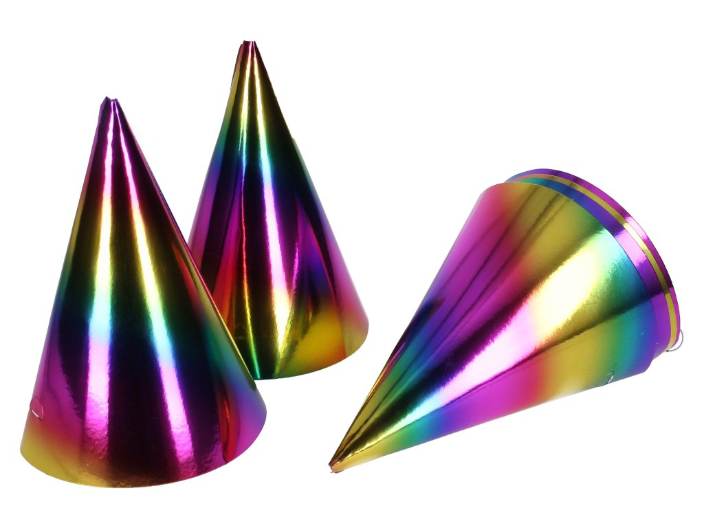 Párty kloboučky nesmí chybět na žádné narozeninové oslavě! Čepičky s motivem duhy mají uchycení na gumičku, pro lepší fixaci na hlavě. Počet kusů: 6
