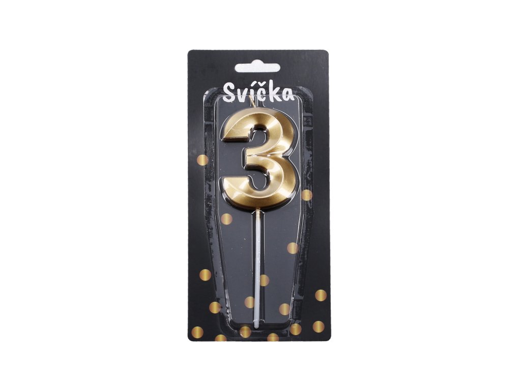 Párty svíčka ve tvaru čísla 3. Dekorace.