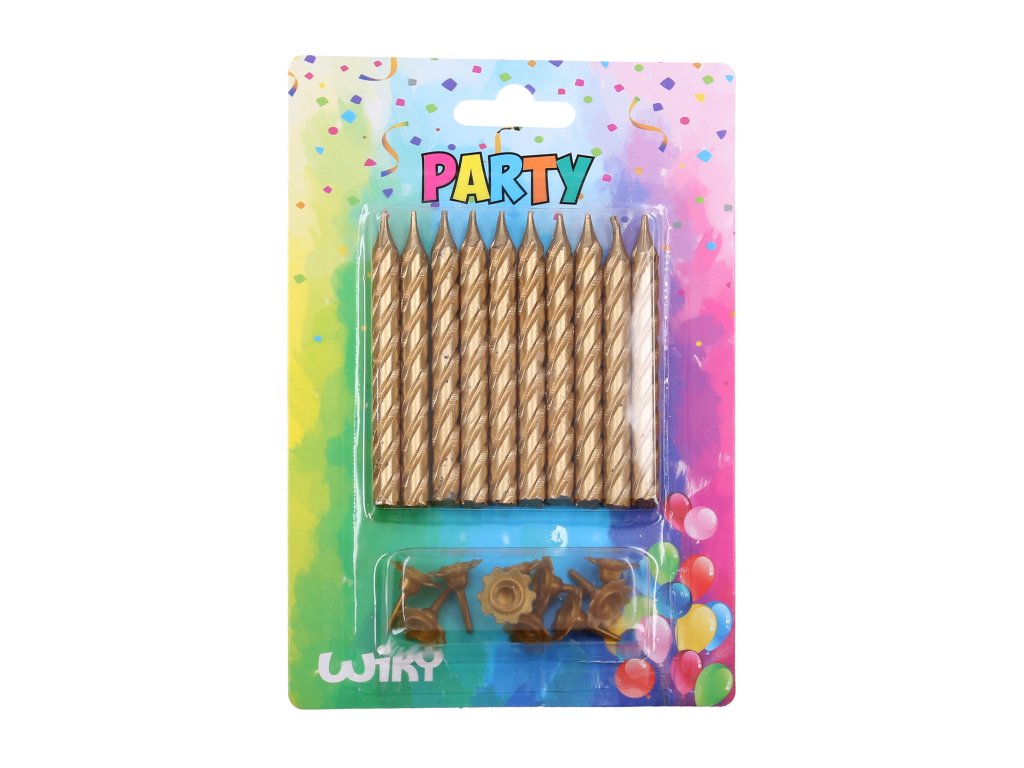 Svíčky 10ks + stojánky 10ks zlatá barva
