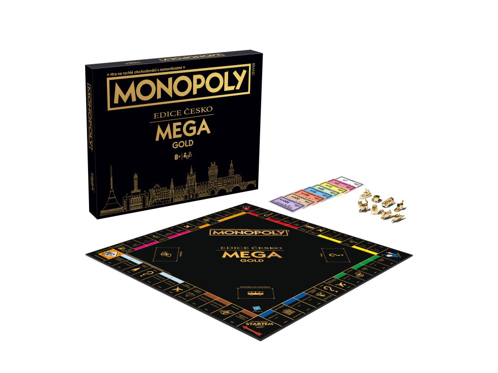 MONOPOLY MEGA Gold Česko. Zlatá MEGA edice hry MONOPOLY s tématikou Česka. Hra pro 2-6 hráčů.