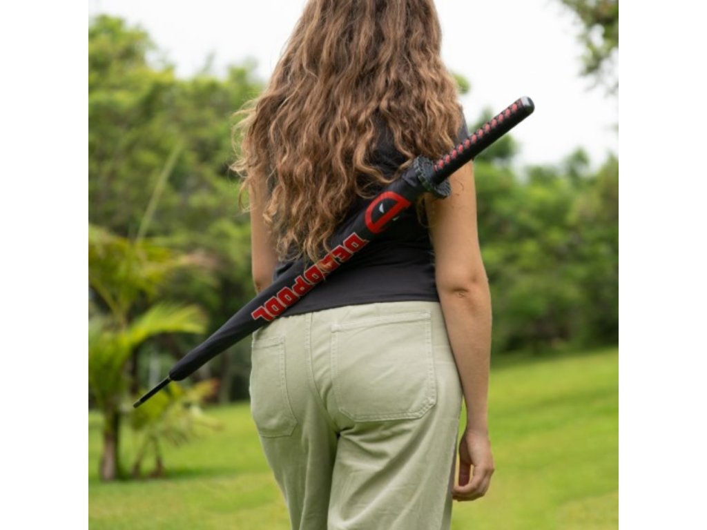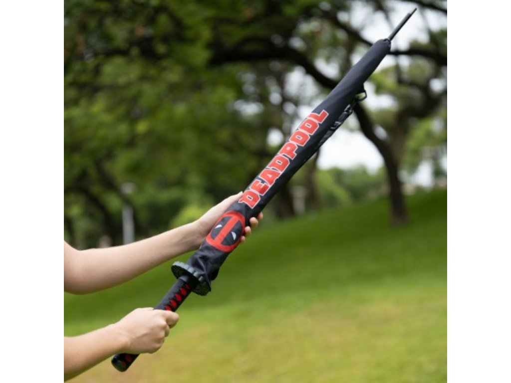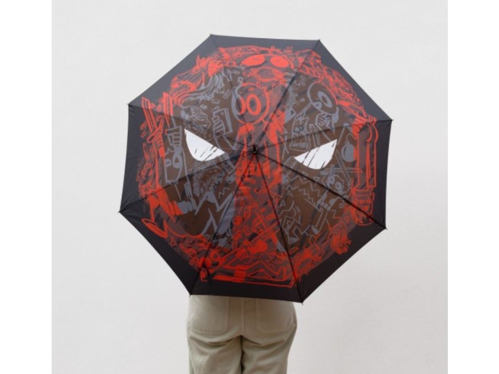 Černý automatický deštník s grafikou obličeje superhrdiny Deadpoola v jeho logu od vydavatelství Marvel. Deštník je vhodným dárkem pro všechny fanoušky, kteří chtějí bránit město i za deště.