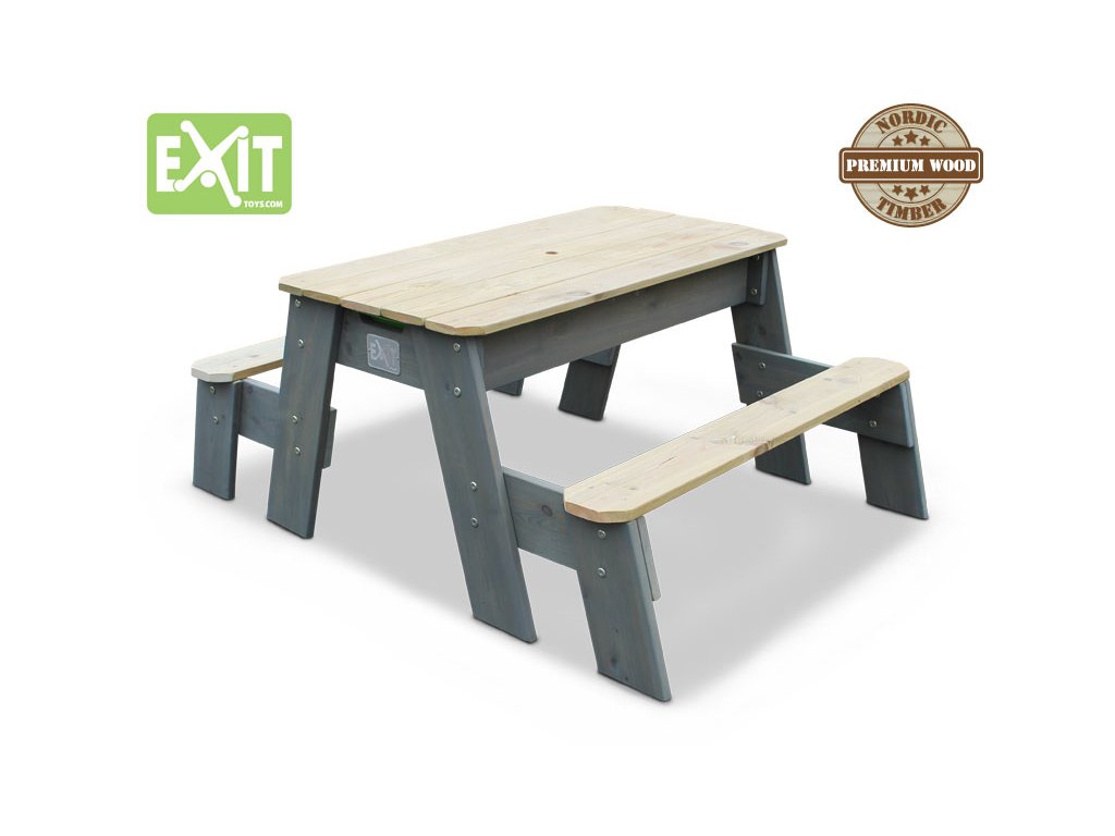 Tento multifunkční stůl můžete použít jako pískoviště, nebo po přidání plastové nádoby jako vodní stůl a při zakrytí jako stolek pro děti, kde si mohou například malovat. Tento stůl je vyyroben z FSC certifikovaného dřeva, ošetřeného impregnací proti škůdcům a chorobám.