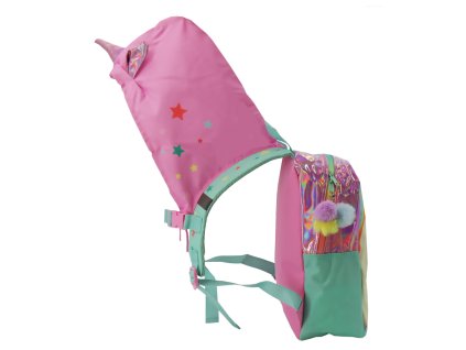 Dětský batoh s kapucí Unicorn | Jednorožec: Duha (objem 10 litrů | 24 x 34 x 12 cm) růžový polyester