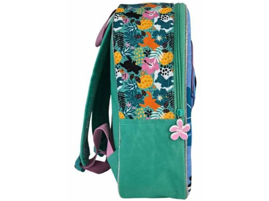 Stylový batůžek s boční kapsou v motivu oblíbené postavičky Stitch. Má plně podšitý a personalizovaný vnitřek, polstrovaná záda a ergonomické, nastavitelné a měkce polstrované ramenní popruhy.