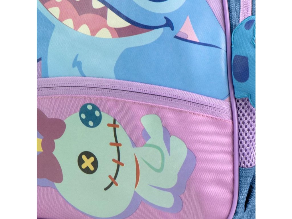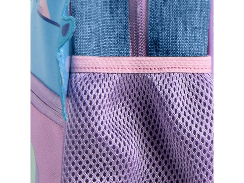 Atraktivní fialovo-růžový batoh s grafikou Stitche s vyčuhujícíma rukama z pohádky Lilo and Stitch. Batoh disponuje vysoce kvalitním materiálem, ochranými gumovými rohy, síťovanou kapsou na láhev, menší přední kapsou. Batoh je polstrovaný s délkově nastavitelnými popruhy a uchem pro snadné nošení v ruce. No, prostě parťák pro všechny menší i větší školáky, kteří milují Stitche.