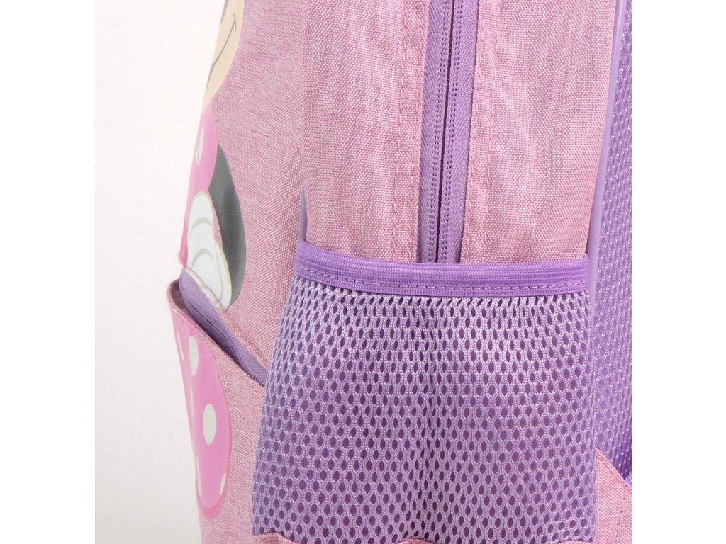 Praktický dětský jednoprostorový batoh v růžové barvě s barevnými detaily vyvedený v motivu postavičky Minnie Mouse s puntíkovanou 3D mašlí. Batoh má praktické ucho pro nošení v ruce, nastavitelné popruhy na zádech , zapínání na zip, boční síťku na láhev , menší přední kapsu na drobnosti a na zadní straně batohu jmenovku na vepsání jména majitele tohoto krásného designového batohu. Tento batoh nesmí chybět s šatníku žádné fanynce postavičky Minnie mouse.
