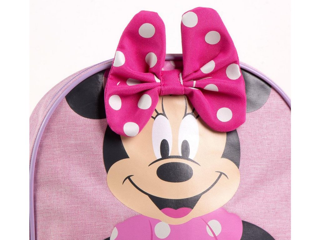 Oficiální produkt, batoh z katalogu zboží s grafikou a licencí populární animované postavičky Minnie Mouse od společnosti Disney.