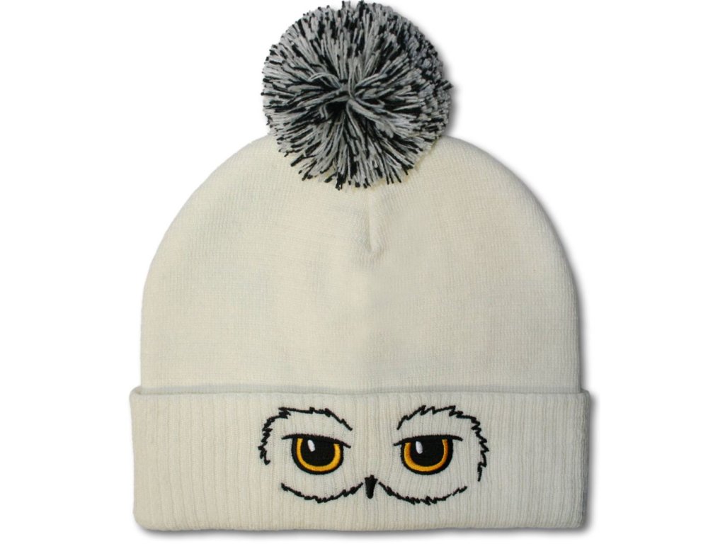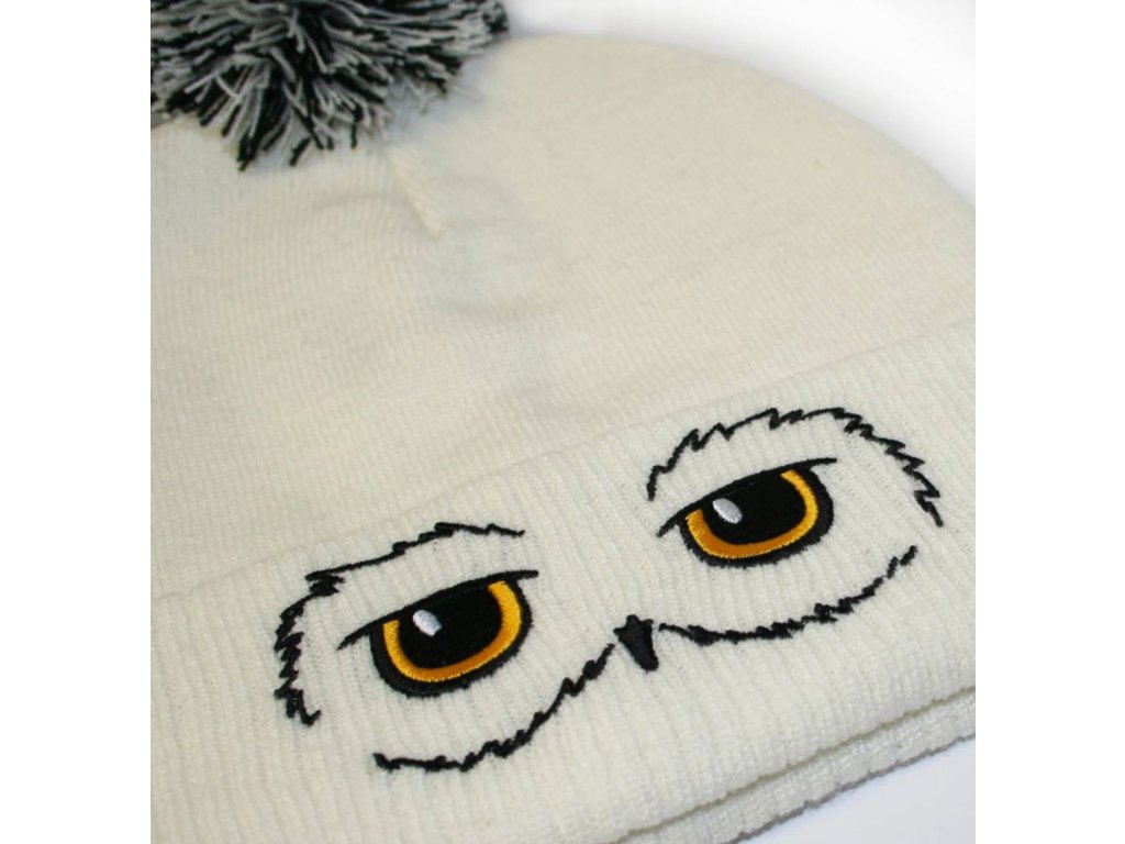 Atraktivní bílá zimní čepice vyvedená jako věrná sova Hedvika od čaroděje Harryho Pottera.