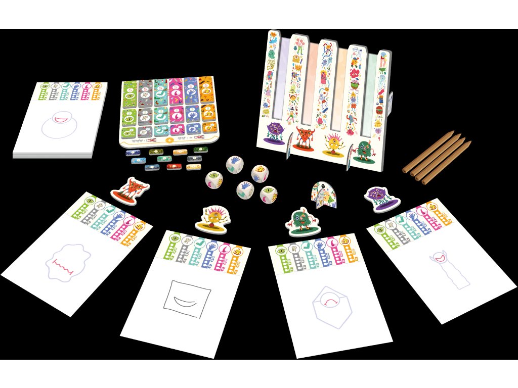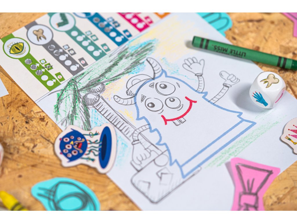 - Nakreslí vybranou část na svou příšeru. Mezitím si hráč po jeho levici vybere jednu ze zbylých kostek a položí ji před sebe. Také si zaškrtne políčko odpovídajícího symbolu a nakreslí část příšery. Tyto kroky provedou jeden po druhém všichni hráči.