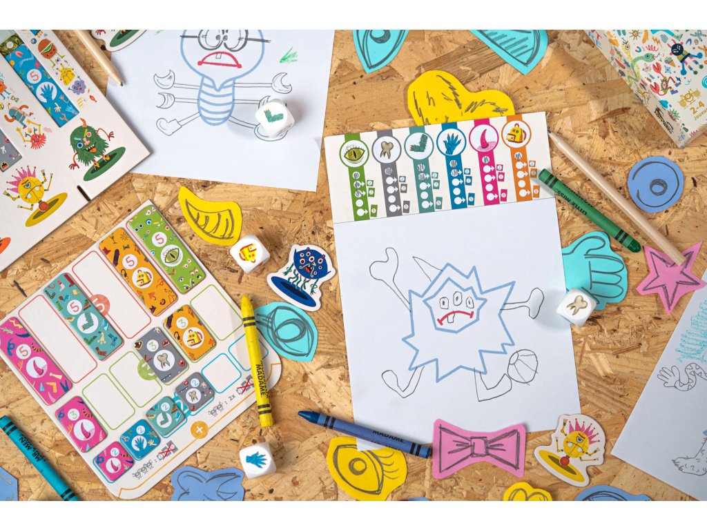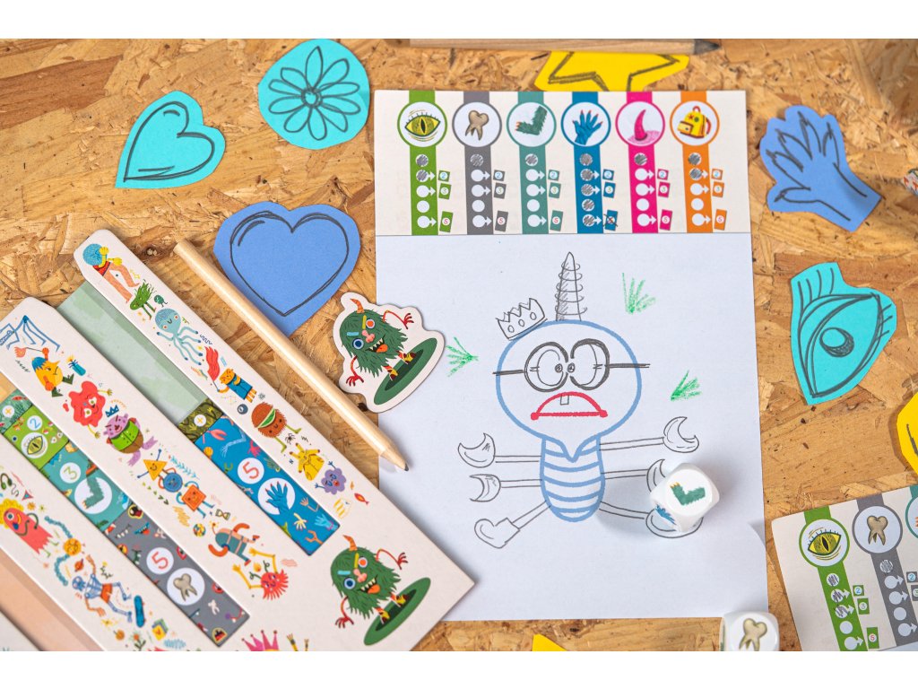 Postupně kreslete svou příšeru a zvyšujte si skóre na svém děsometru vkládáním žetonů příšery (zubů, rukou, nohou...).
