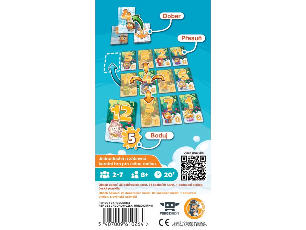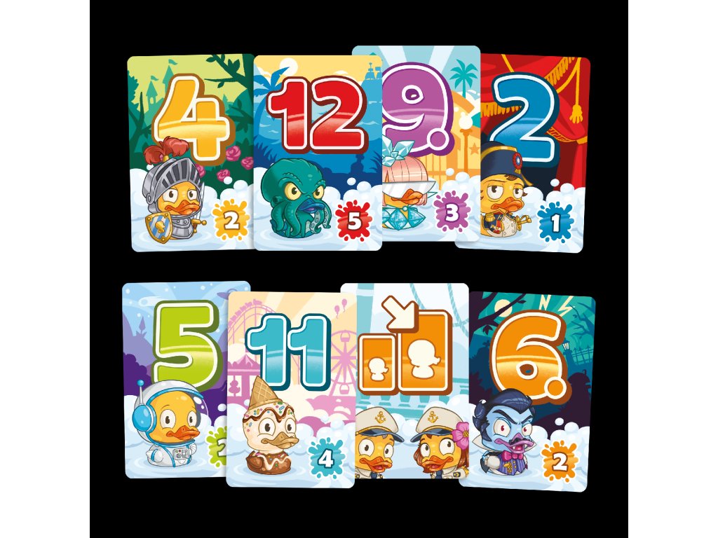Každý hráč si vybere 1 ze 7 kachních rodin, zamíchá 12 karet a náhodně je vyloží do mřížky 4x3.