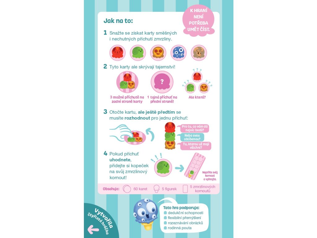 Sbírejte prapodivně vtipné příchutě zmrzliny do vašeho zmrzlinového kornoutku. Jaký kopeček asi nyní přijde na řadu? Šnečí? Pizzový? Nebo snad červíčkový? Pokud se vám podaří správně odhadnout příchuť, která následuje, všechny kopečky dané zmrzliny jsou vaše. Kdo jako první nasbírá 9 a více kopečků zmrzliny do svého zmrzlinového kornoutu, tak vyhrává hru.