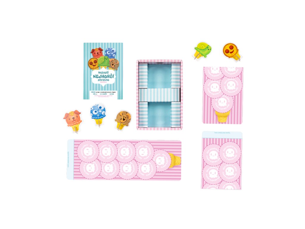 Nejlepší nejhorší zmrzlina je Koťátková hra od tvůrců Výbušných koťátek. Tato hra společně s dalšími Koťátkovými hrami vám garantuje skvělou zábavu i s těmi nejmenšími. Za jejím vznikem stojí čtyřletá holčička, která společně se svým tatínkem (Elan Lee - autor Výbušných koťátek) vzala papíry, fixy a nálepky a pustila se do vytváření her, u kterých se budete bavit a zároveň se i něco naučíte.