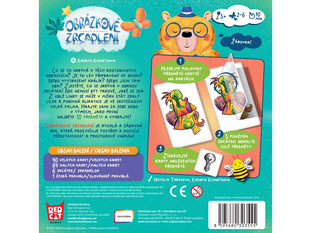 Co se to ukrývá v těch roztodivných obrazcích? Je to lev připravený ke skoku? Nebo vystrašený králík? Nebo jsou tam oba? Zjistěte, co se skrývá v odrazu zrcátka! Nic nemusí být takové, jaké se zdá. Z oblé linky se může v mžiku stát zralý lilek a podivná klikatice je ve skutečnosti velká palma. Hrajte sami za sebe nebo v týmech, jako první najděte 10 předmětů a vyhrajte!