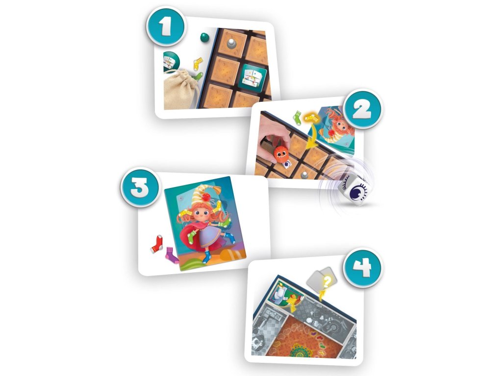 1. Najděte dílky ve své barvě a posbírejte ponožky.