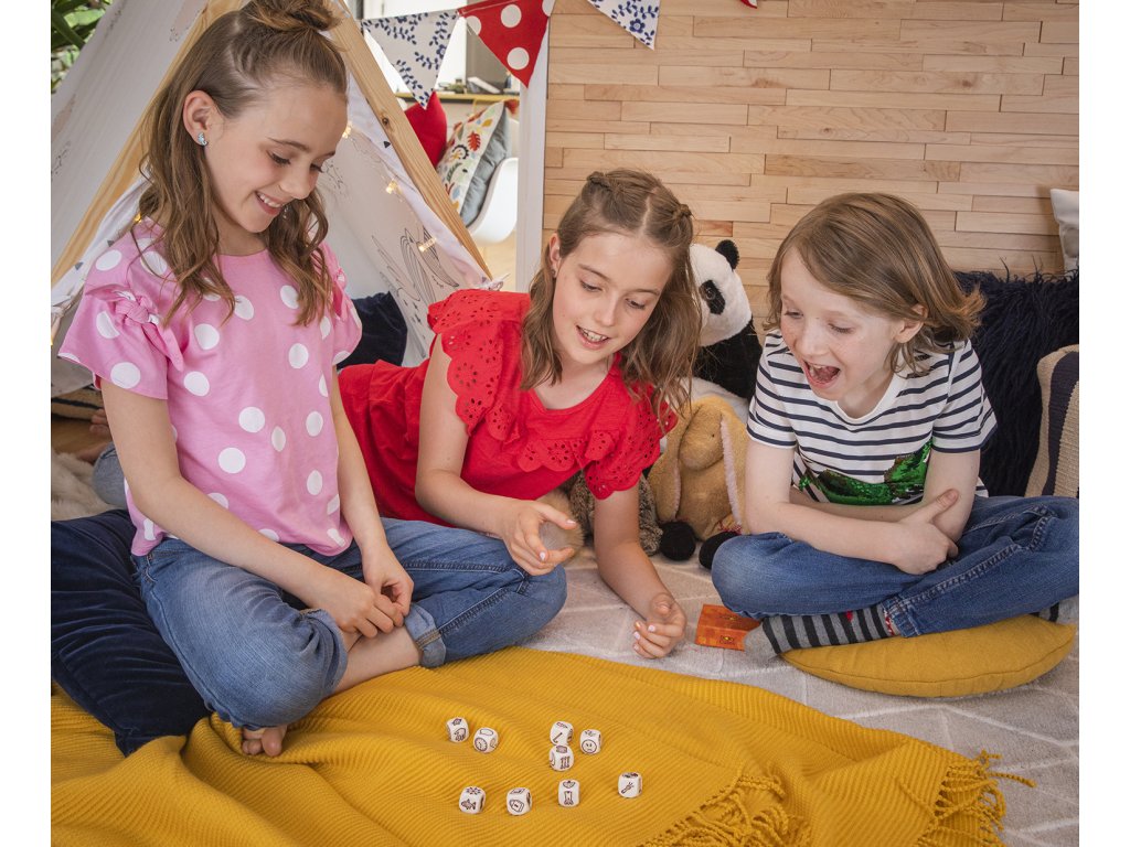 Příběhy z kostek je hra, ve které zábavným způsobem hráči zapojí své kreativní myšlení a vytvářejí vlastní příběhy.