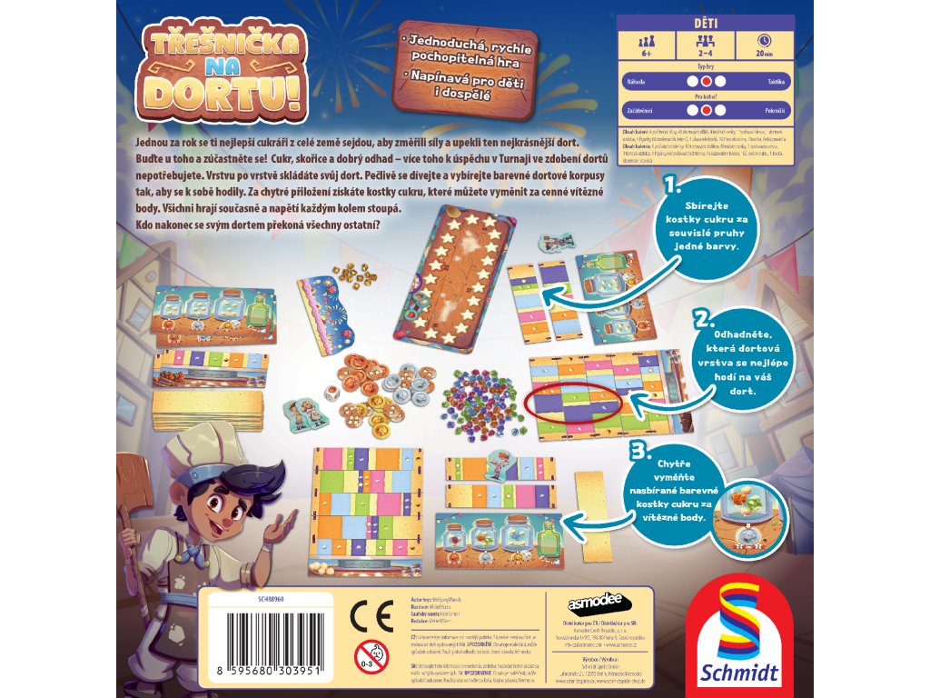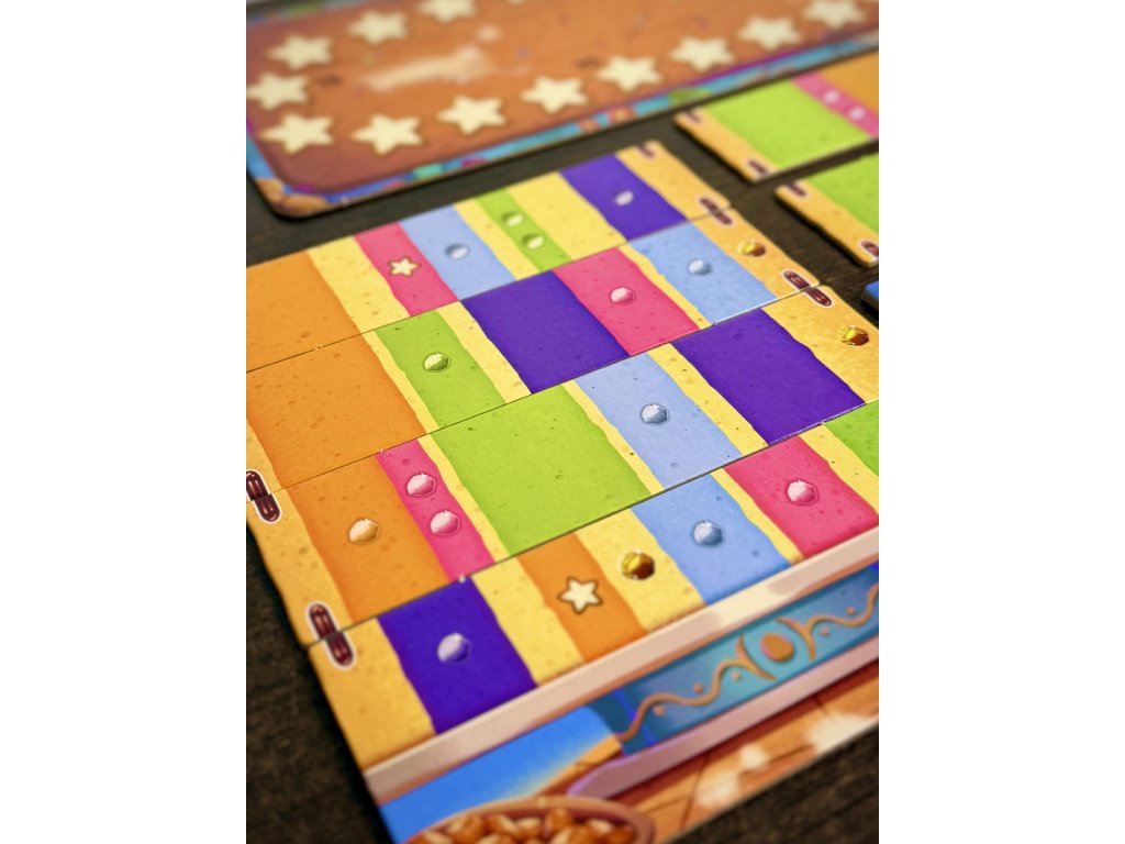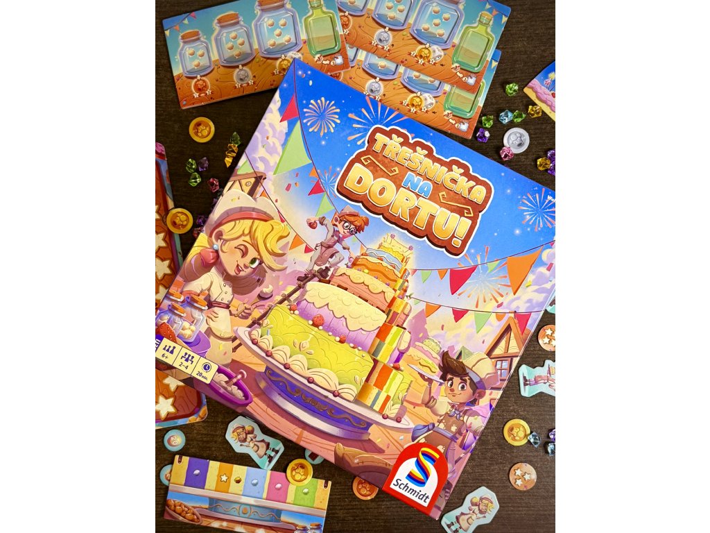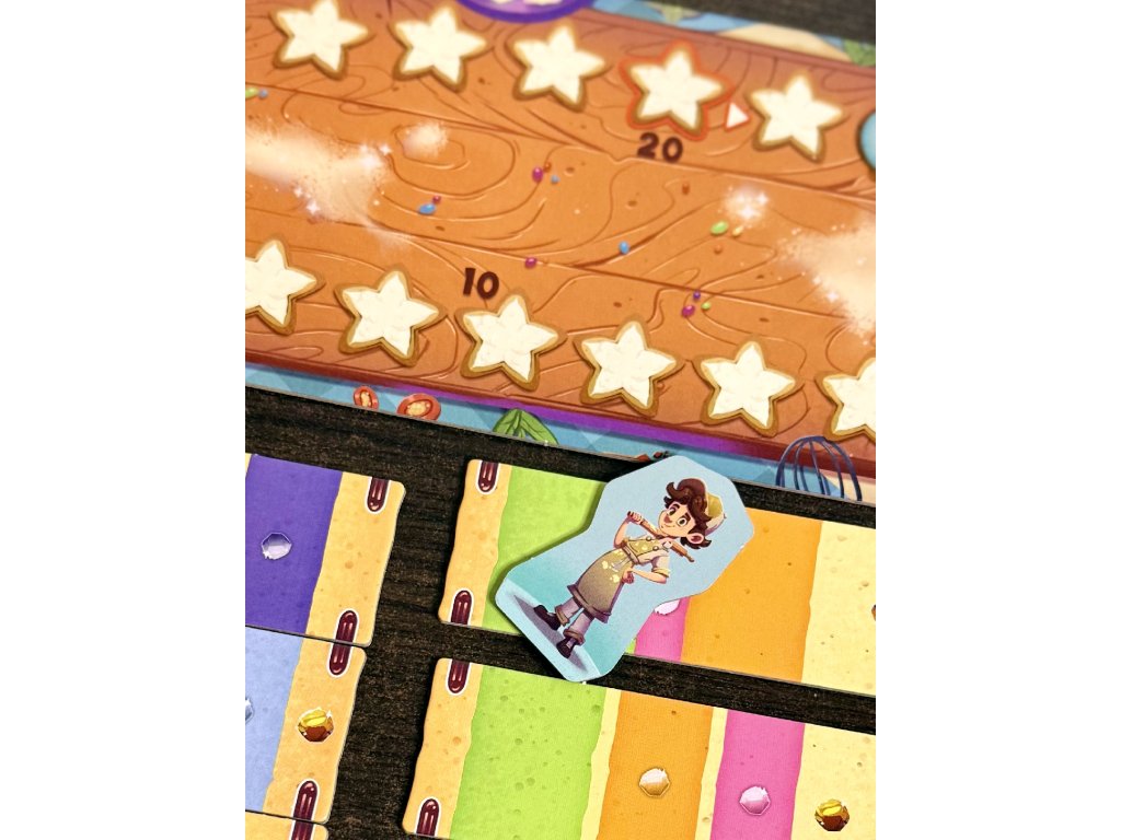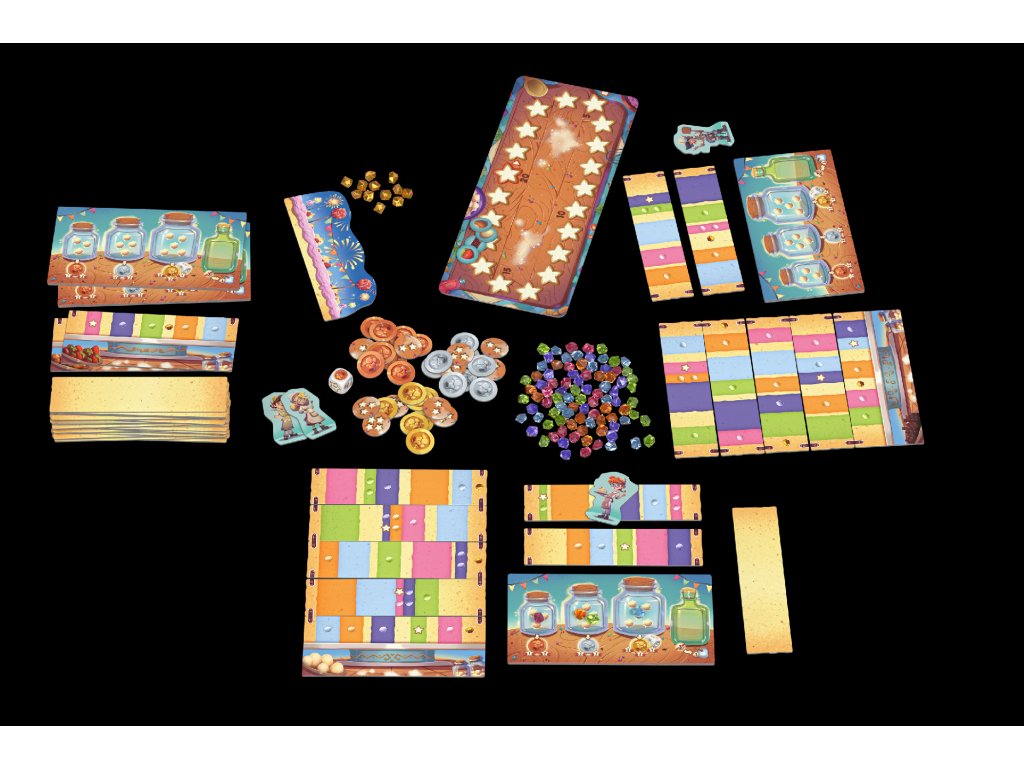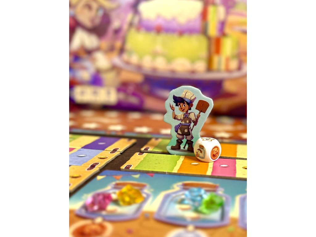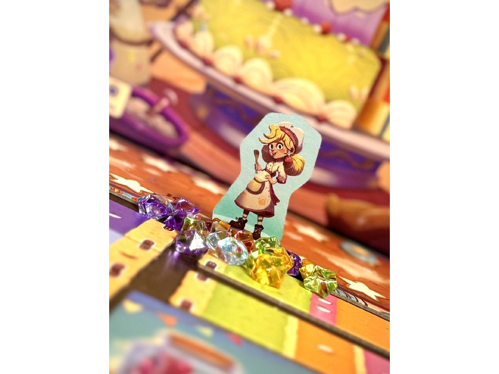 - Díky barevnému zpracování, výrazným komponentům a atraktivnímu vizuálu působí hra na stole doslova jako skutečný dort plný cukrové fantazie.