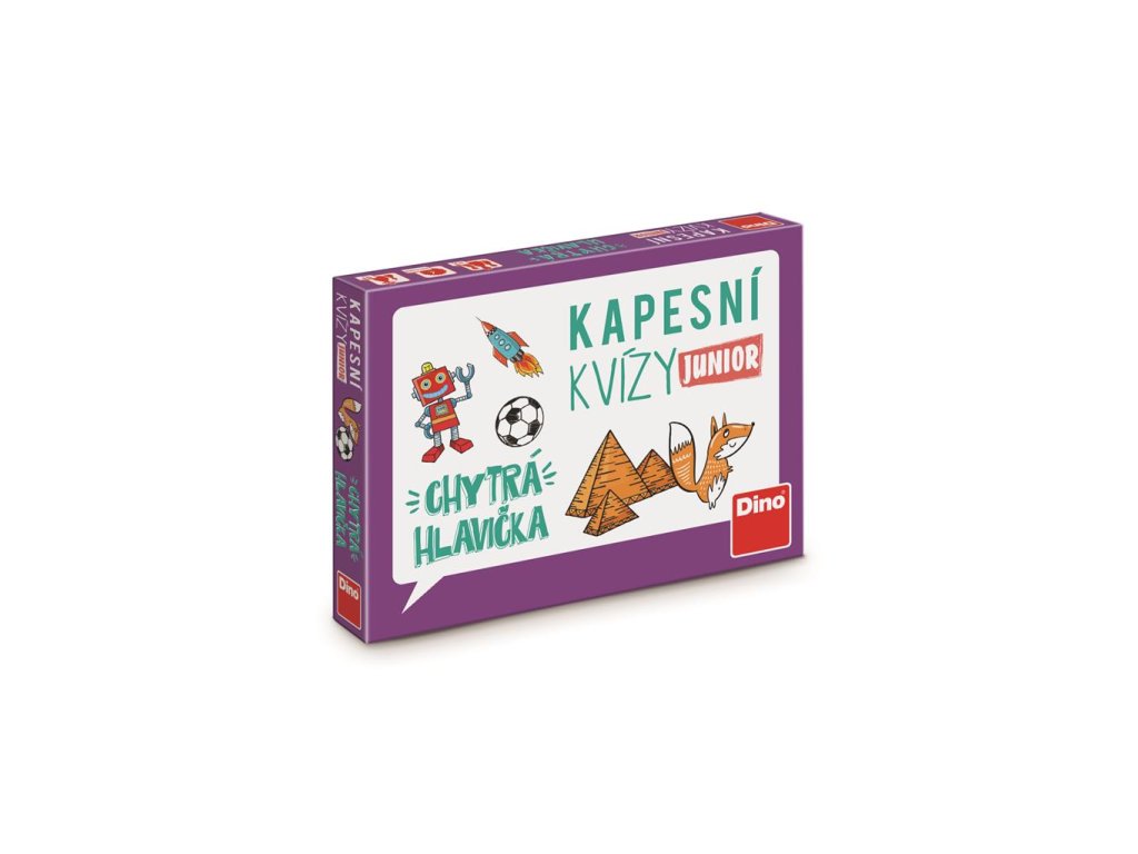 Hra Kapesní kvíz Junior - Chytrá hlavička. V balení je 100 otázek pro chytré hlavičky o přírodě, kultuře, historii, technologiích a sportu.