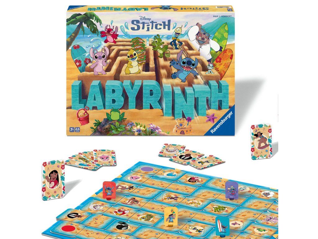 Labyrinth – magická hra s bludištěm. Snadná, ale pokaždé napínavá! Klasická hra oblíbená po celém světě už po několik generací v nové Disney: Stitch. Oblíbené postavičky se světa Disney: Stitch se ztratily v pohyblivém tajemném labyrintu. Dokážete je najít a vysvobodit? Jen ten, kdo najde všechny postavičky ze svého balíčku hracích karet jako první, může vyhrát. Zasuňte dílek s chodbou labyrintu do herní desky na některé z vyznačených míst a posouvejte zdmi a cestami při cestě za kouzelnými Disney postavičkami. Ale pozor na ostatní hráče, ti chtějí zase úplně jinam a mohou vám zablokovat cestu.