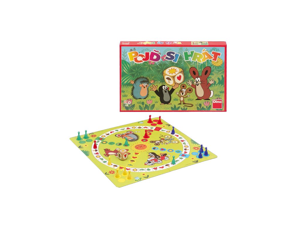 Hra Pojď si hrát pro 2 - 4 hráče vhodná od 3 let. Balení obsahuje 1 herní plán, 16 figurek ve 4 barvách, 1 hrací kostku s obrázky, 1 pravidla.