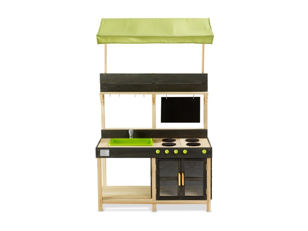 Je unikátní hrací kuchyň pro děti od 2 let. Má všechny základní náležitosti jako sporák s otočnými knoflíky, skutečný kohoutek s tekoucí vodou, tabuli a troubu. Kohoutek funguje tak, že k němu připojíte zahradní hadici a díky odnímatelnému umyvadlu lze snadno vylévat vodu. Vaření pod střechou zpříjemní tyto chvilky ve slunečném počasí. K tomu, že Exit Yummy 300 má velký skladovací prostor pro pánve a další kuchyňské doplňky, můžete na malých háčcích zavěsit zbývající nádobí.
