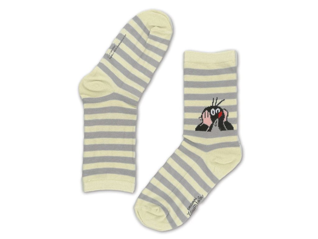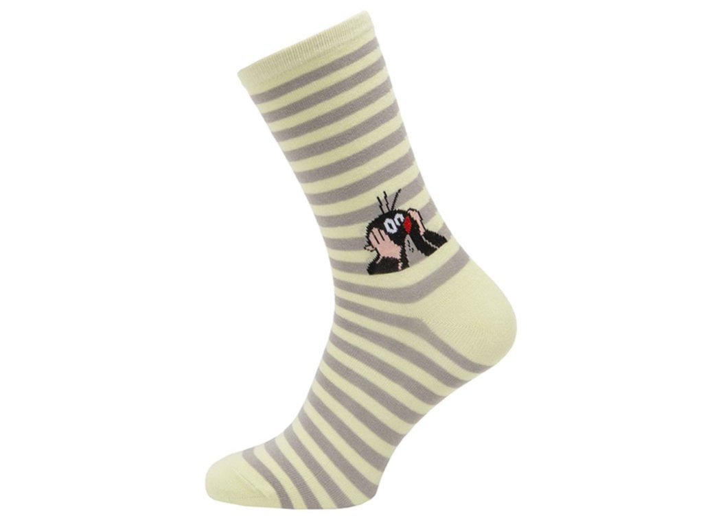 Dětské pruhované žluto-šedé ponožky s grafikou seriálové postavy Krtečka, který se diví (Oh!). Ponožky jsou vhodným dárkem pro každého menšího i většího fanouška.