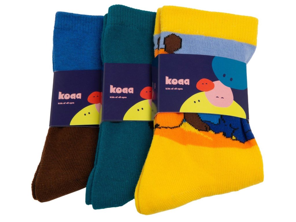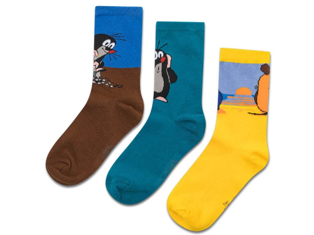 Set 3 párů dětských ponožek (modré, žluté a modro-hnědé barvy) s grafikou seriálové postavy Krtečka. Ponožky jsou vhodným dárkem pro každého menšího i většího fanouška.