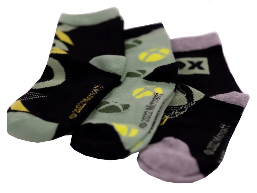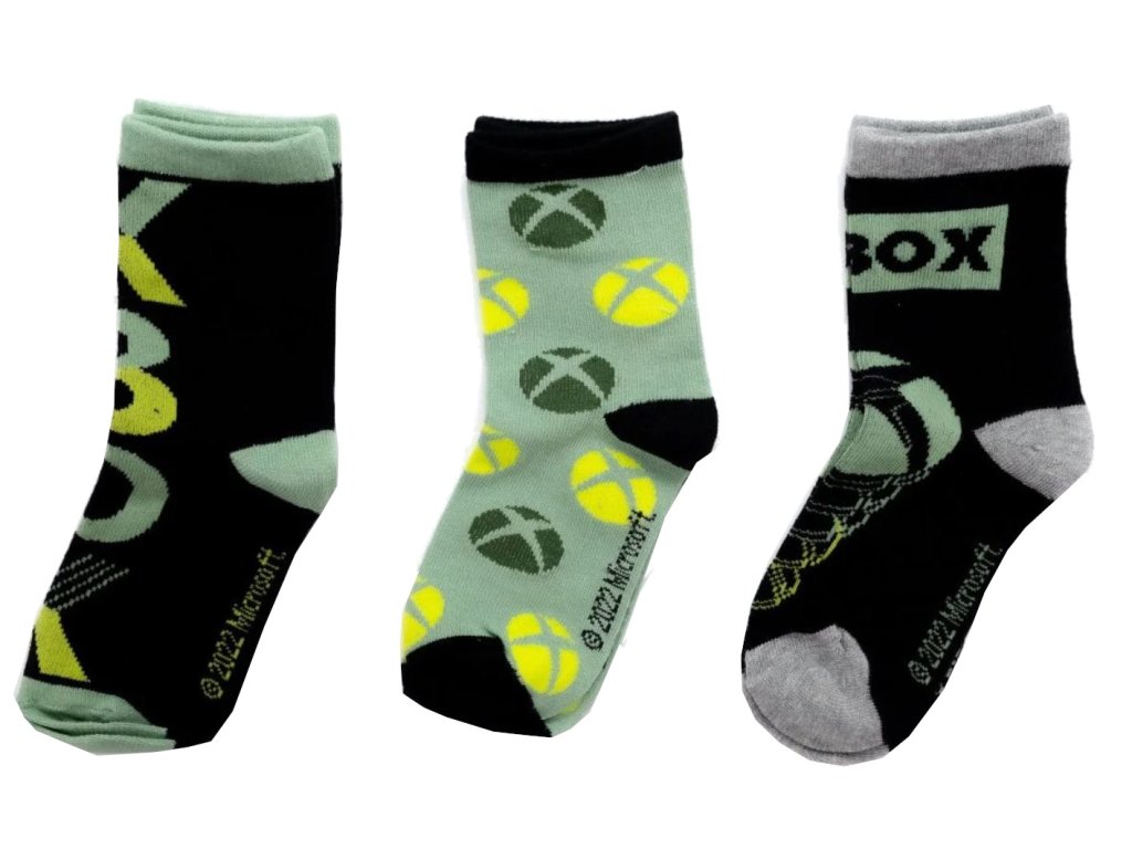 Oficiální produkt - set 3 párů dětských ponožek z katalogu zboží s grafikou a licencí populárního brandu konzolí Xbox.