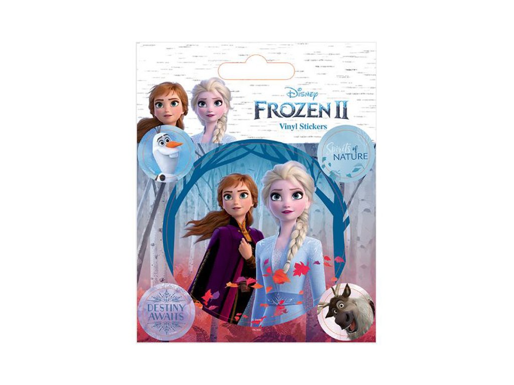 Oficiální samolepky z katalogu produktů s logem, fotografiemi herců a grafikou dětské pohádky Frozen (Ledové Království).