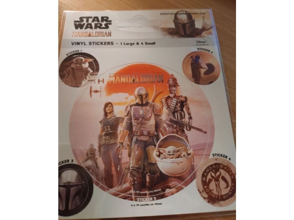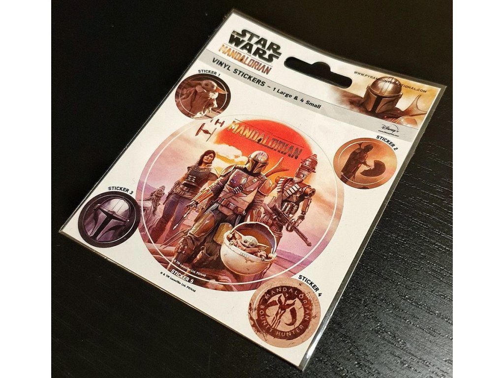 Oficiální samolepky a doplňkové zboží z katalogu produktů s licencí TV seriálu The Mandalorian od Star Wars (Hvězdné války).
