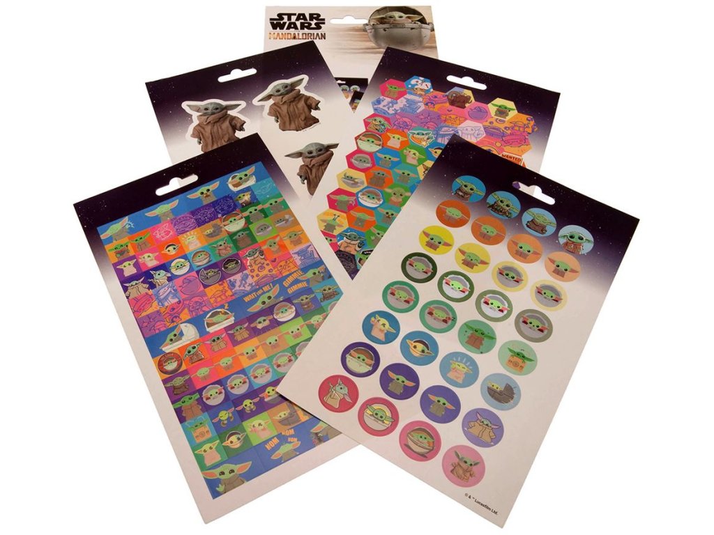 Oficiální produkt - nálepky z katalogu zboží s licencí a grafikou populárního televizního seriálu Star Wars: The Mandalorian od společnosti Marvel.